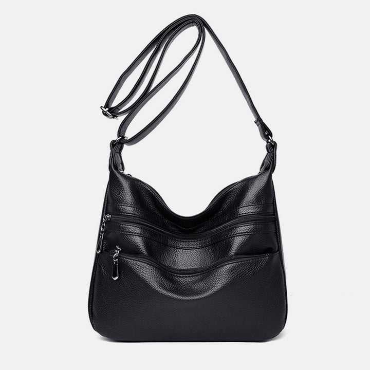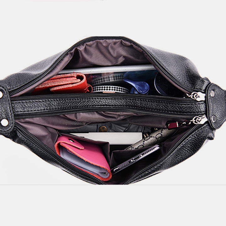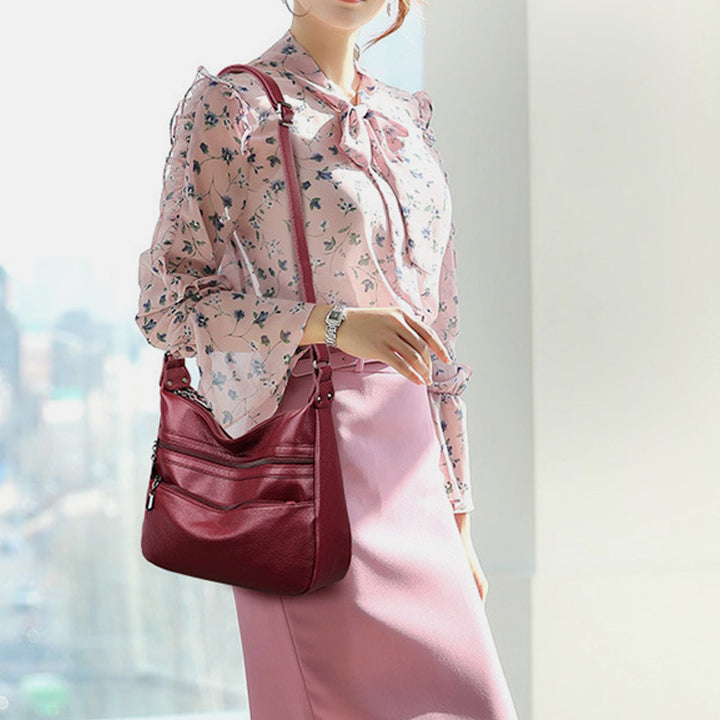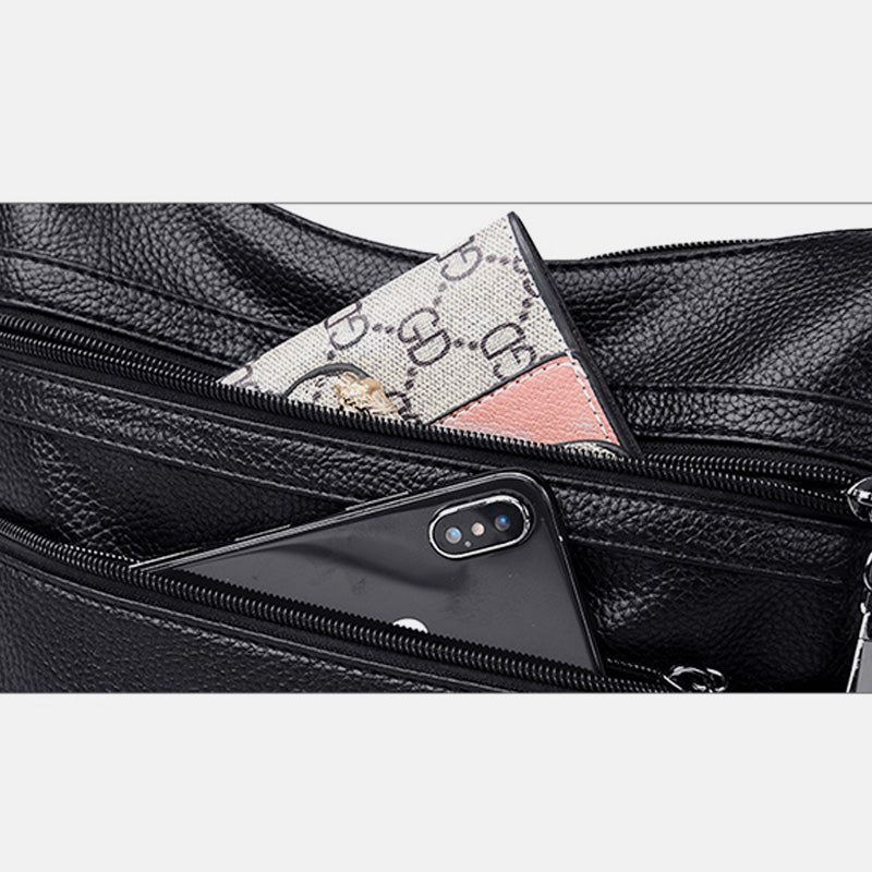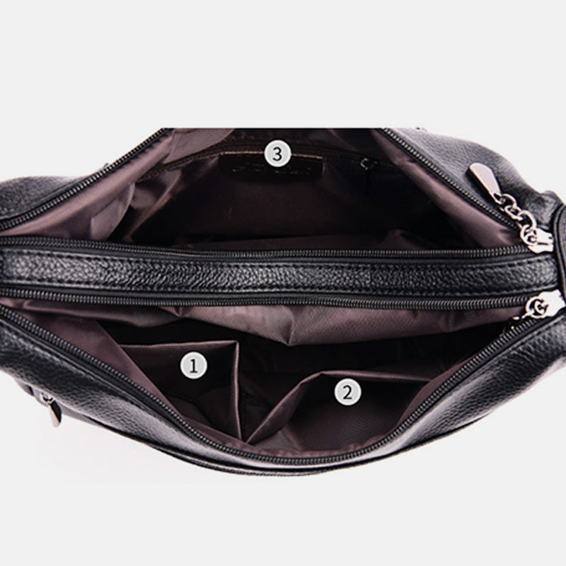 Innenstruktur: 2 Hauptfächer mit Reißverschluss, Innenfach, 1 Handytasche, 1 Kartenfach, 2 Reißverschlussfächer vorne, 1 Reißverschlussfach hinten