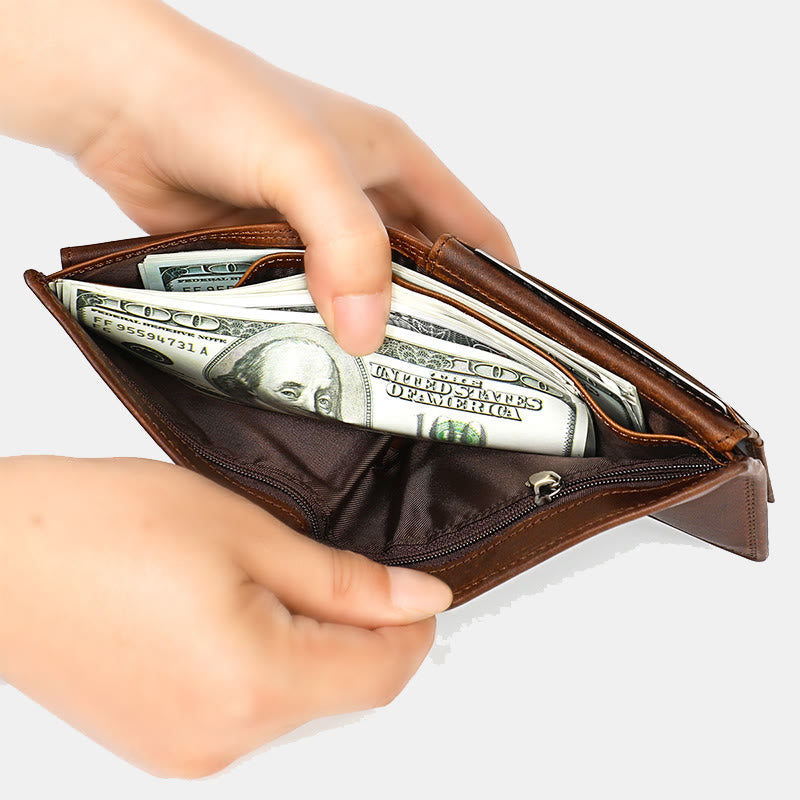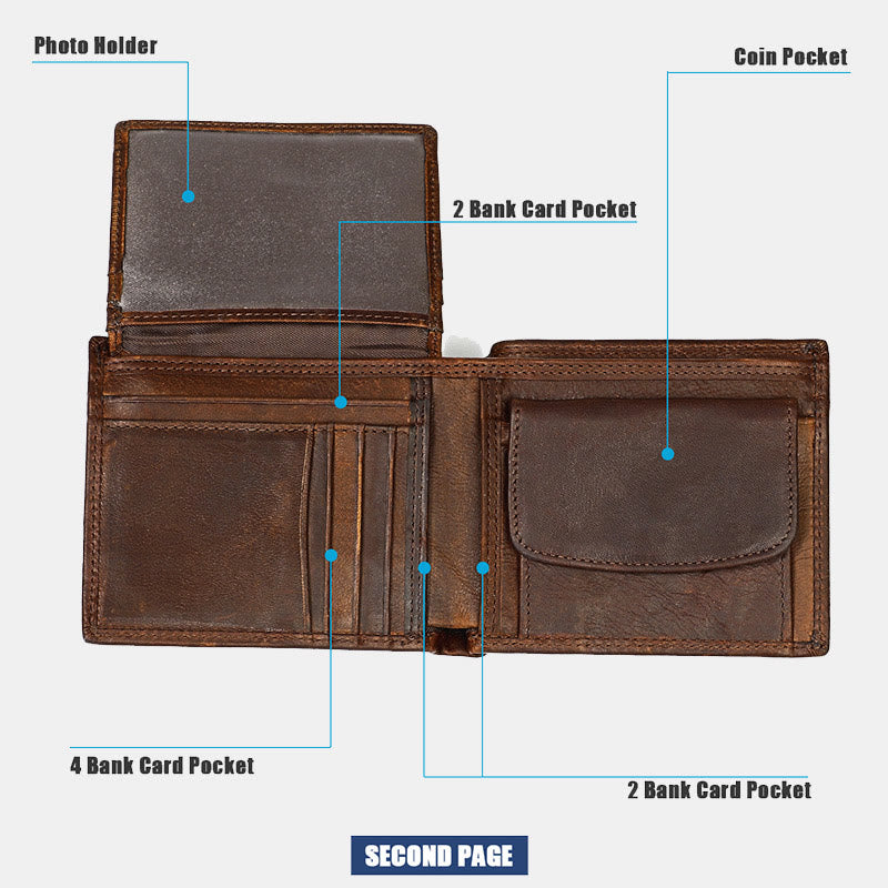 Interne Struktur: 10 Kartensteckplätze, 2 Fotosteckplätze, 1 Münzfach, 2 Bargeldfächer, 1 Innenfach mit Reißverschluss