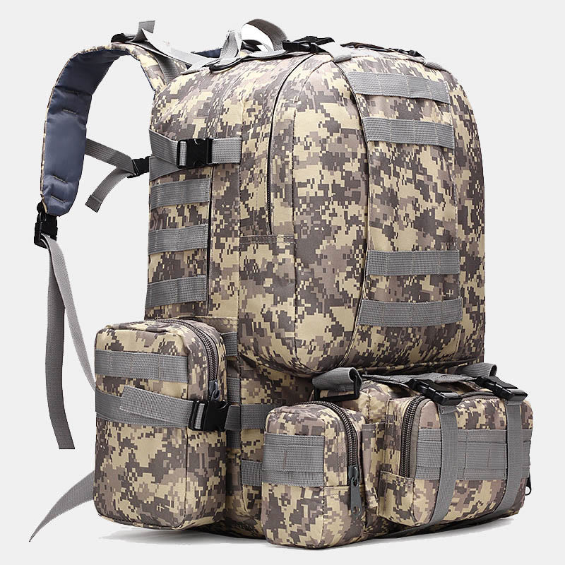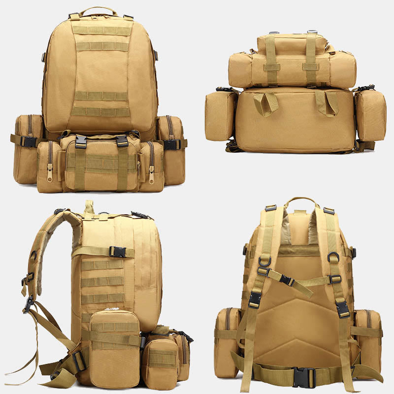 Interne Struktur: 1 Haupttasche, 1 Innenfach, 1 Vordertasche, 2 abnehmbare Seitentaschen, 1 abnehmbare vordere Schultertasche