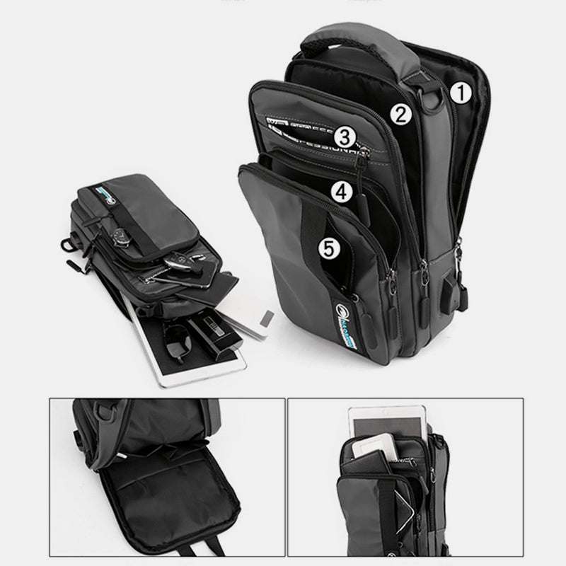 Leichte klassische Schultertasche mit mehreren Taschen und USB-Ladeanschluss für 4 Verwendungszwecke