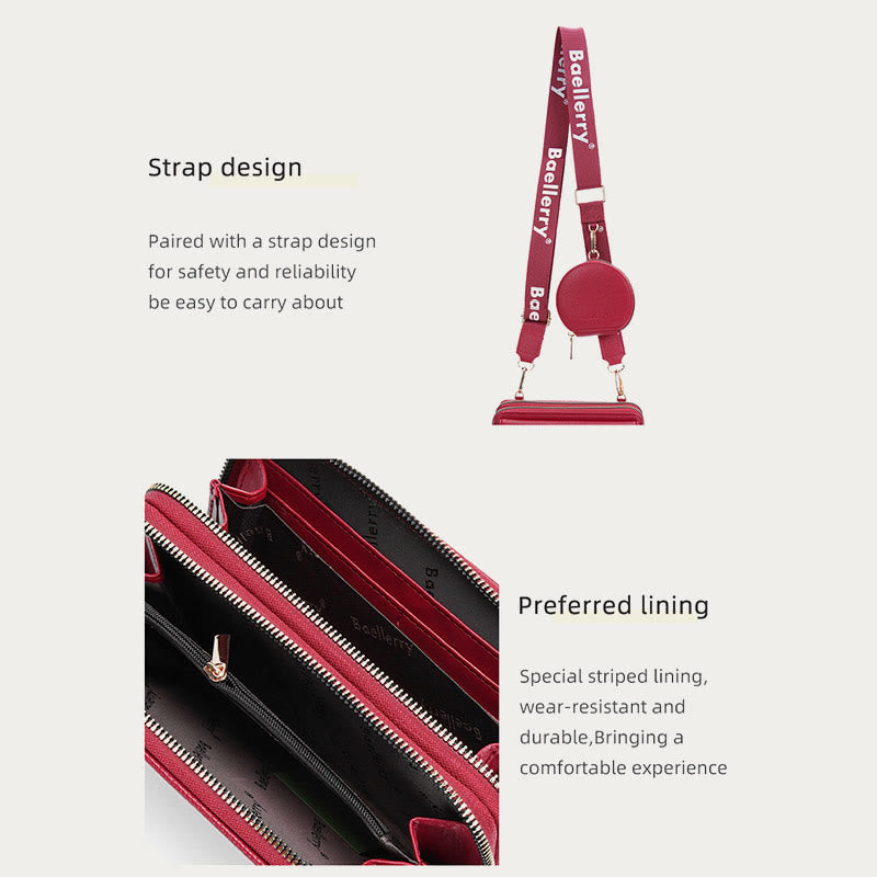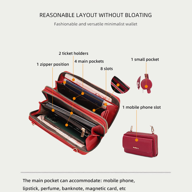 Interne Struktur: 4 Innenfächer, 1 Innentasche mit Reißverschluss, 2 Tickethalter, 8 Kartenfächer, 1 Handytasche (Vordertasche), 1 Reißverschlusstasche