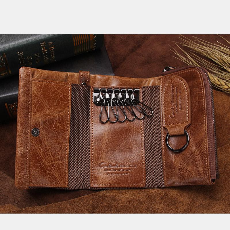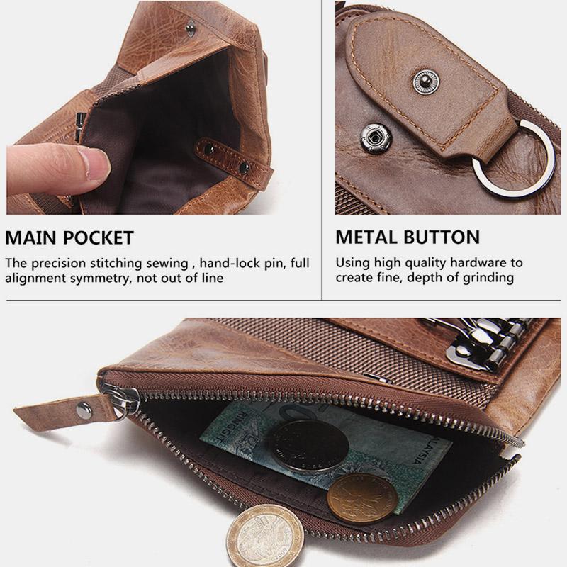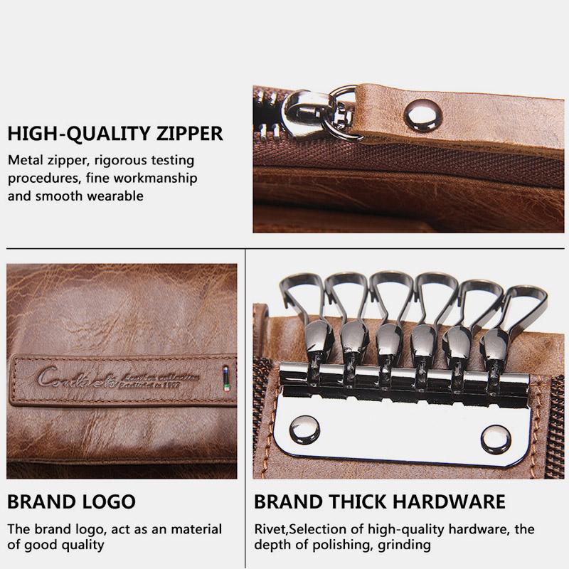 Interne Struktur: 1 großes Geldfach, 2 Kartenfächer, 6 Schlüsselhalter, Schlüsselanhängerhalter, Reißverschlussfach