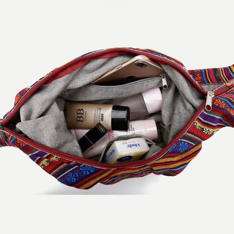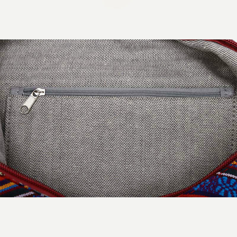 Innenaufteilung: 1 Haupttasche, 1 Innentasche mit Reißverschluss, 1 aufgesetzte Innentasche, 1 Gesäßtasche,