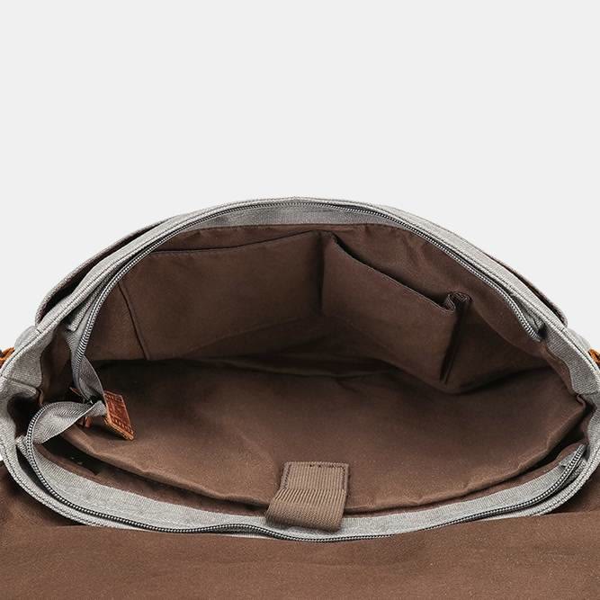 Interne Struktur: 1 Haupttasche, 2 aufgesetzte Innentaschen, 1 Laptop-Innenfach, 2 Vordertaschen, 1 Gesäßtasche