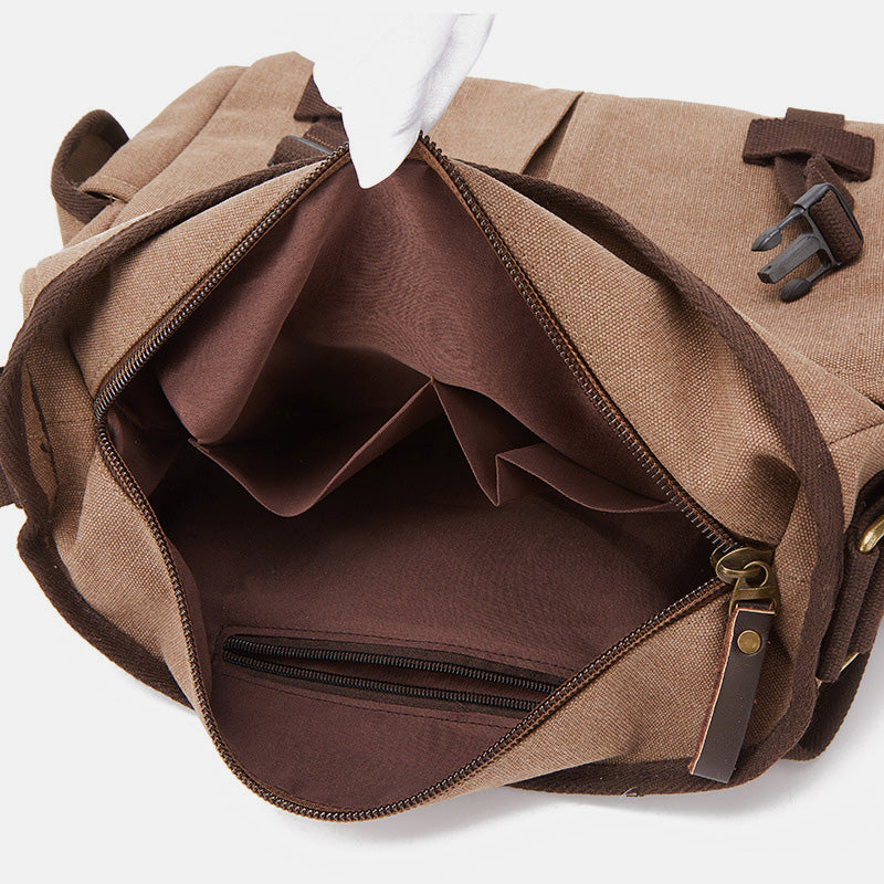 Interne Struktur: Hauptfach, Innentasche mit Reißverschluss, Telefontasche, Seitentasche, vordere Reißverschlusstasche, offene Vordertasche, hintere Reißverschlusstasche