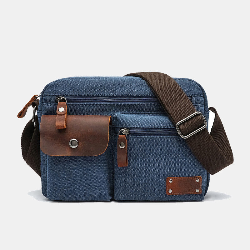 Interne Struktur: 1 Haupttasche, 2 aufgesetzte Innentaschen, 1 Innentasche mit Reißverschluss, 3 Vordertaschen, 1 Gesäßtasche