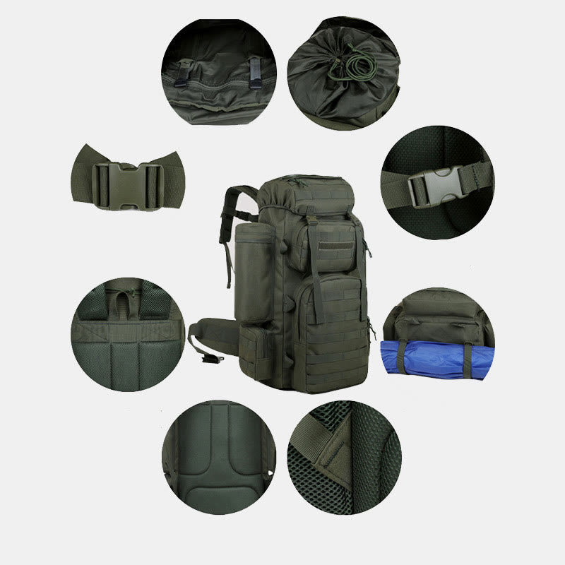 Interne Struktur: 1 Haupttasche, 2 Vordertaschen, 1 obere Tasche, 4 Seitentaschen