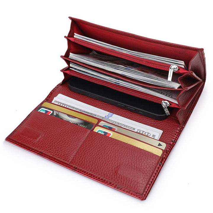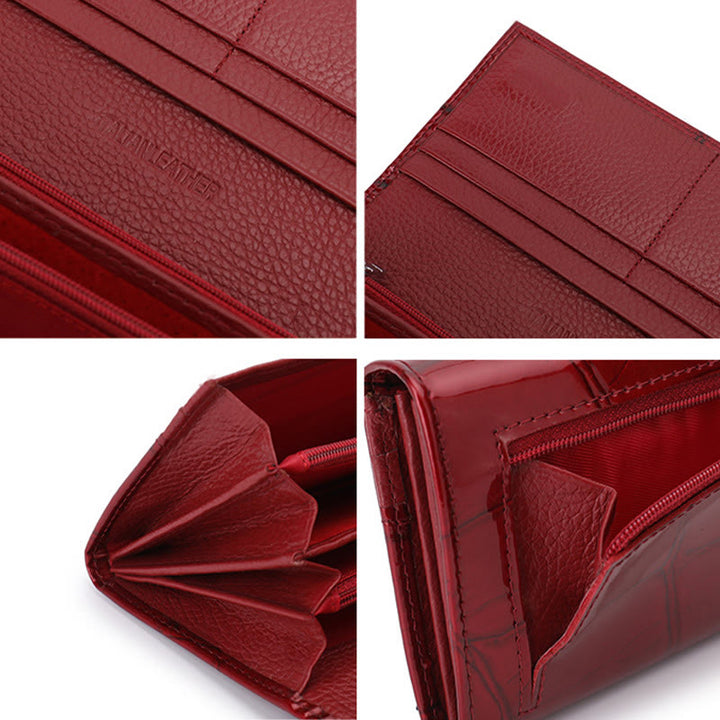 Interne Struktur: 8 Kartenfächer, 1 Geldscheinfach, 4 Bargeldfächer, 2 Innenfächer mit Reißverschluss, 1 Reißverschlussfach auf der Rückseite