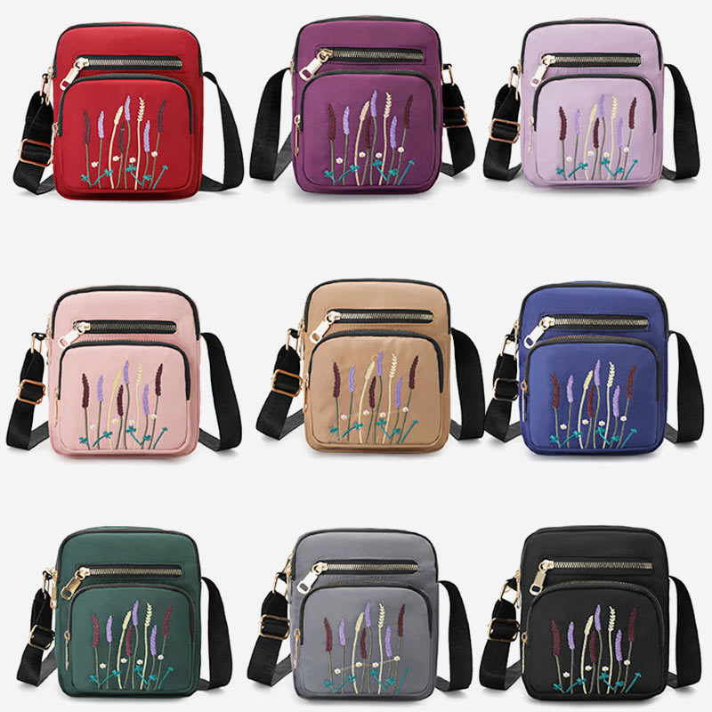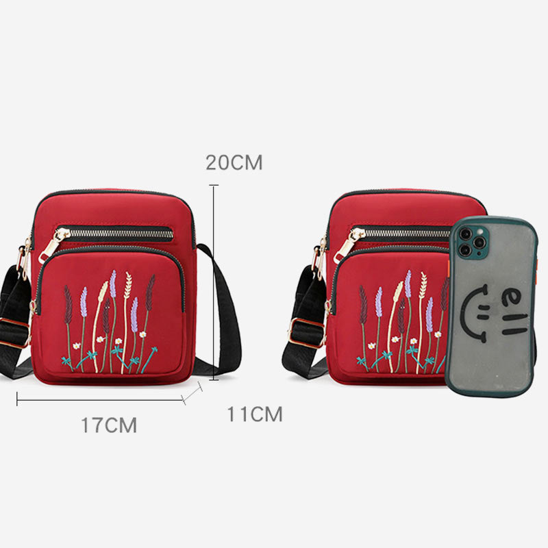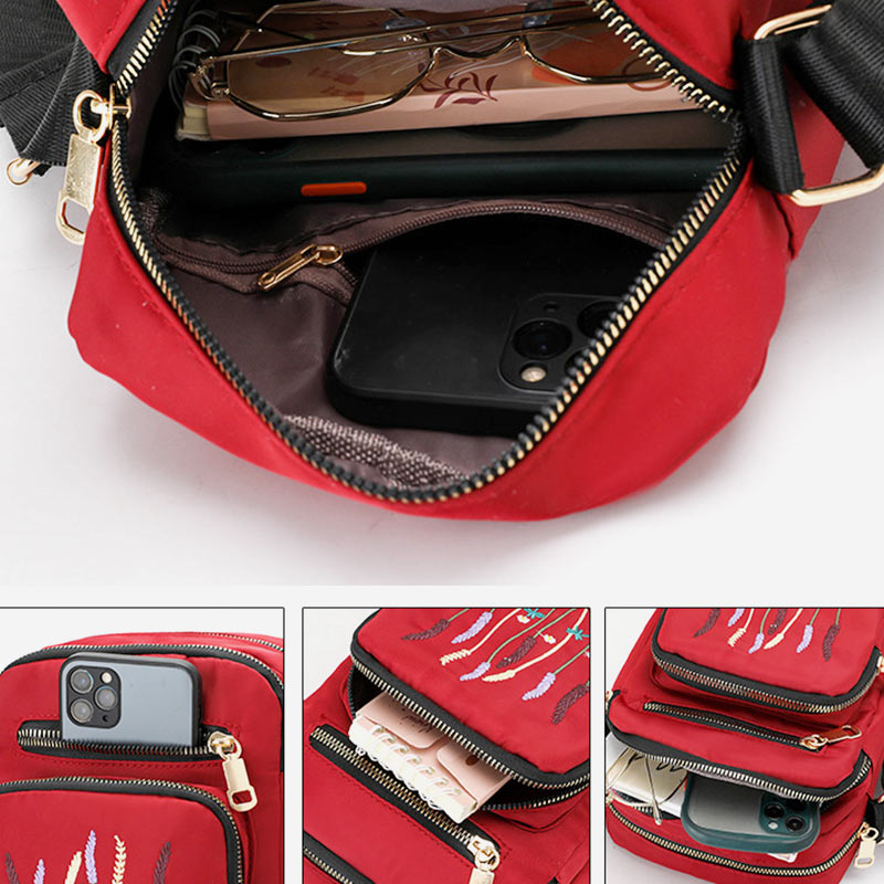 Leichte, wasser- und reißfeste Umhängetasche für Damen mit mehreren Taschen und Stickereien