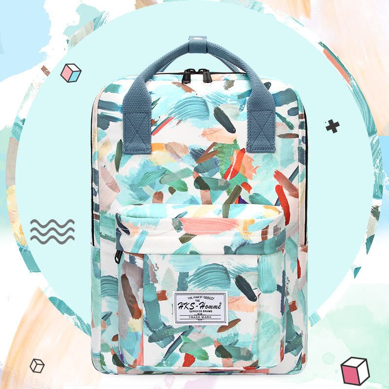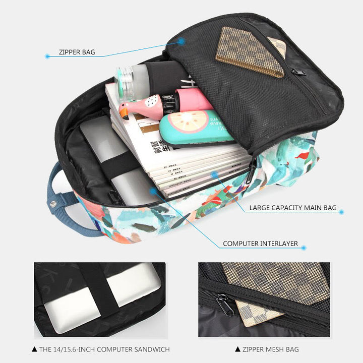 Mehrfarbig bedruckter Laptop-Rucksack, 15,6 Zoll, College-Schule, Büchertasche, Reise-Tagesrucksack