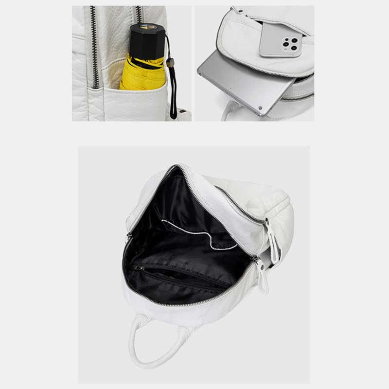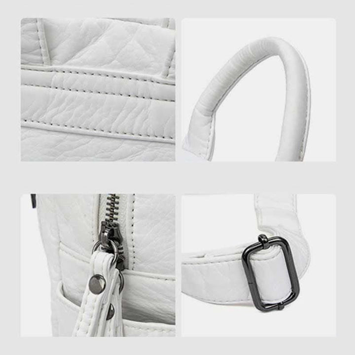 Interne Struktur: 2 Haupttaschen, 1 Innentasche mit Reißverschluss, 2 aufgesetzte Innentaschen, 1 Vordertasche, 2 Seitentaschen, 1 Gesäßtasche