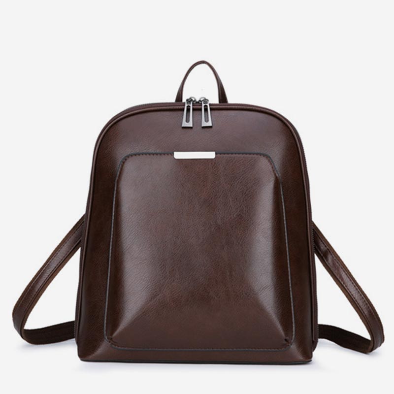 Retro PU Leder Daypack Frauen Casual Rucksack Geldbörse Reißverschluss Schultertasche