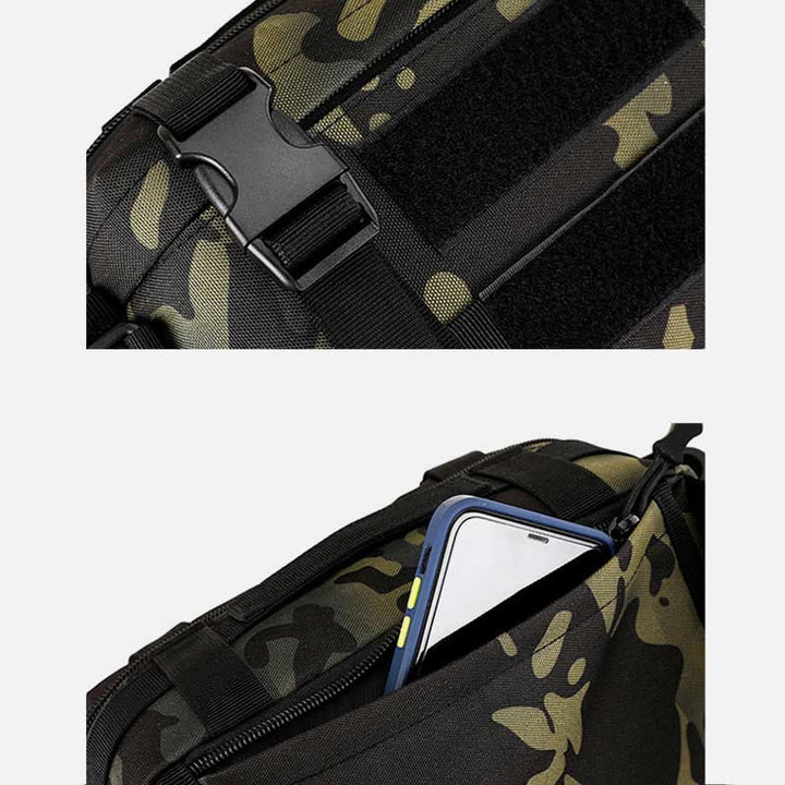 Interne Struktur: 1 Haupttasche, 1 Innentasche mit Reißverschluss, 1 Gesäßtasche, 1 Vordertasche, 1 Seitentasche