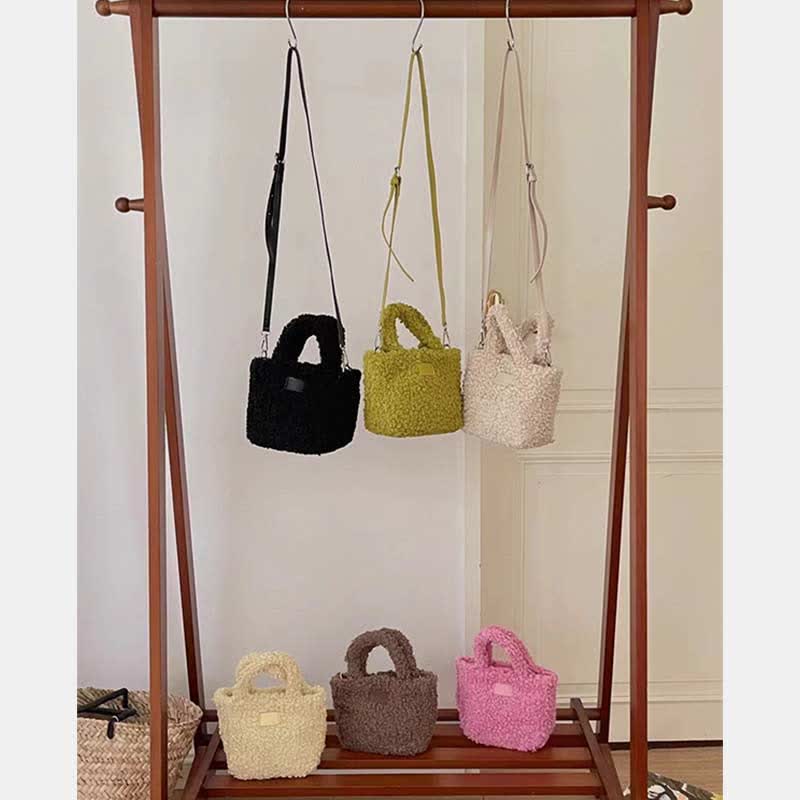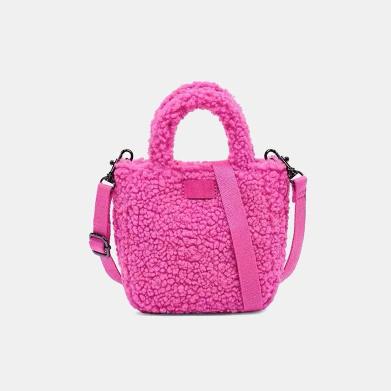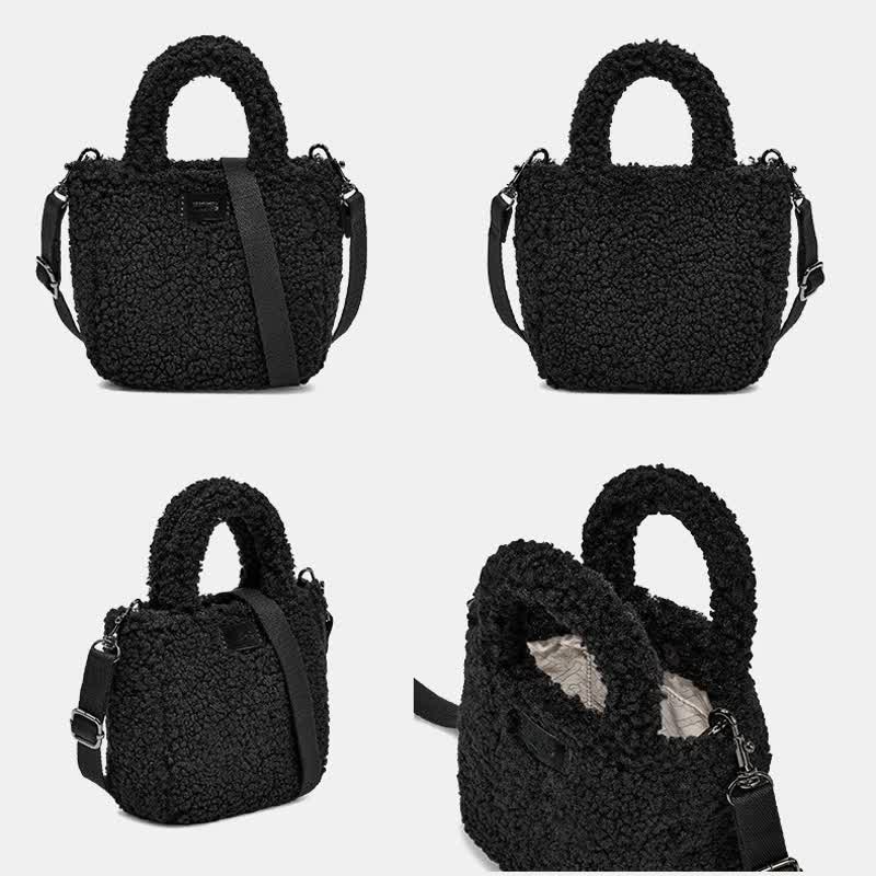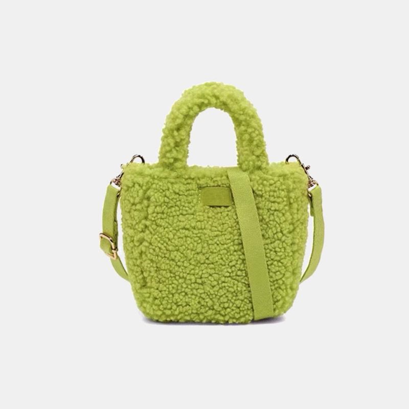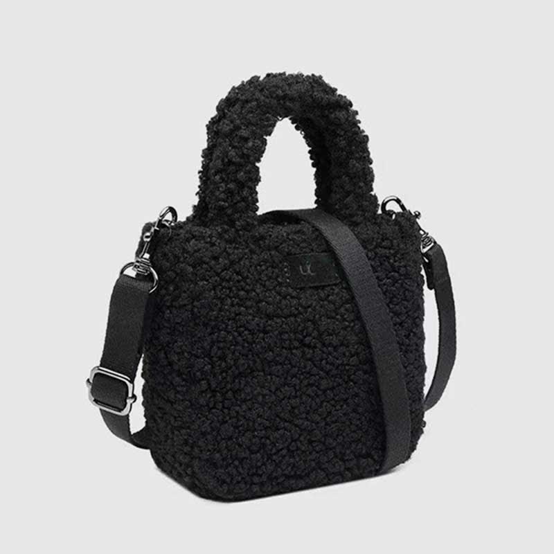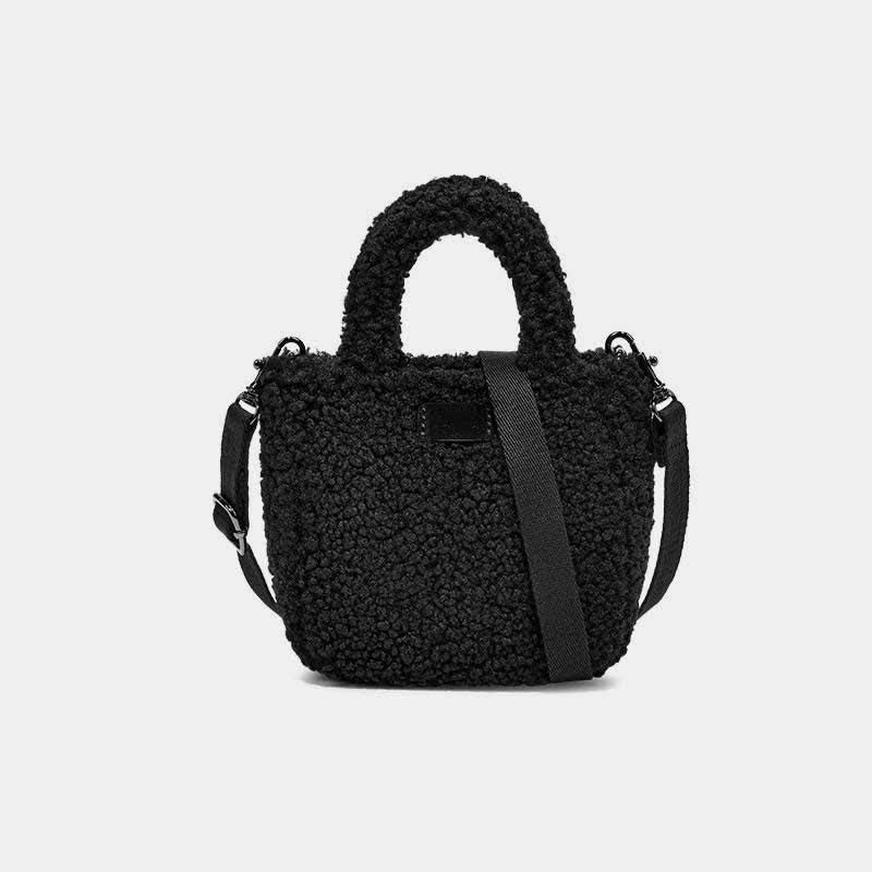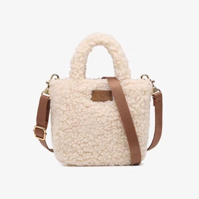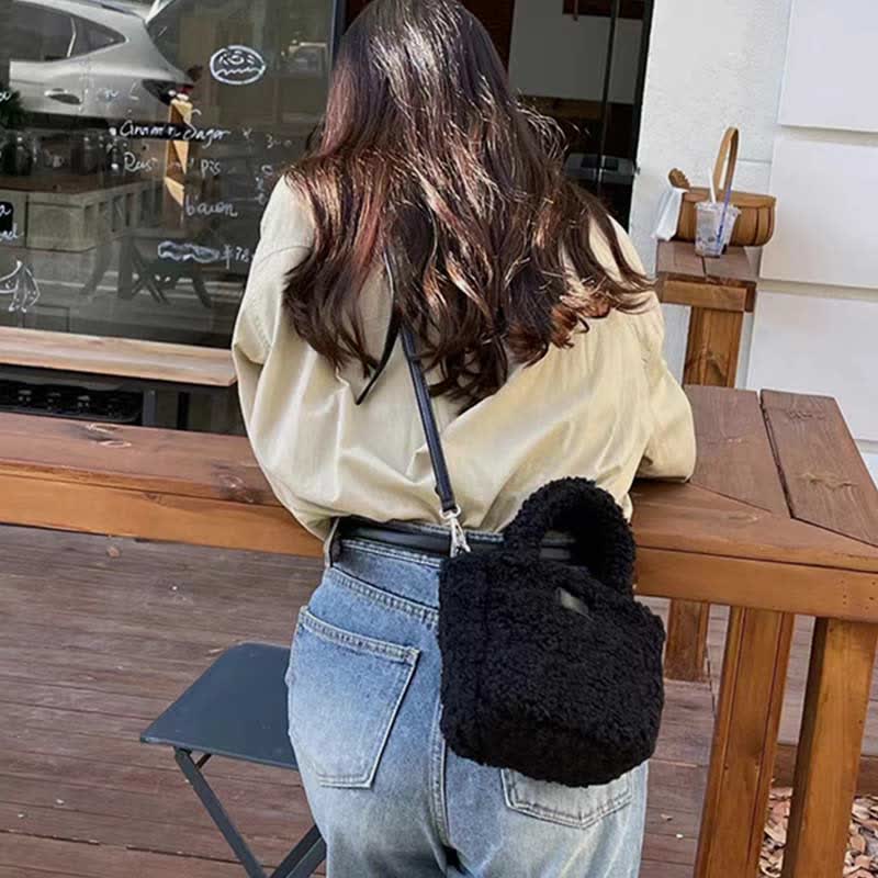 Kleine Plüsch-Tragetasche für Damen, flauschige Umhängetasche mit Henkel oben