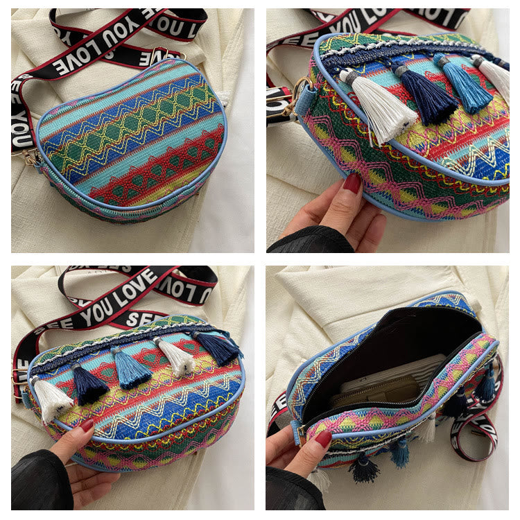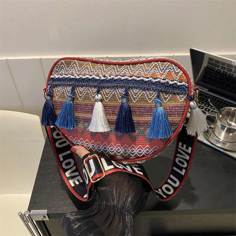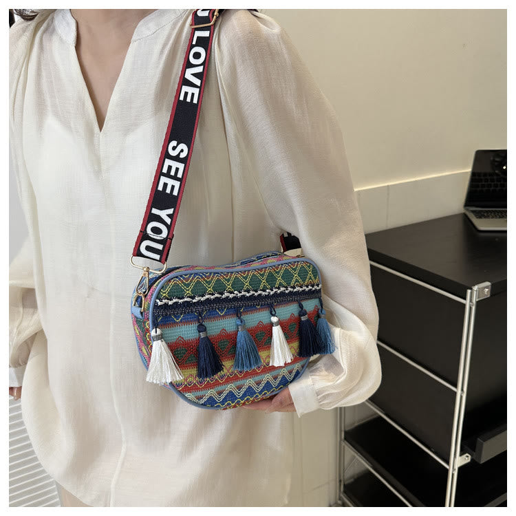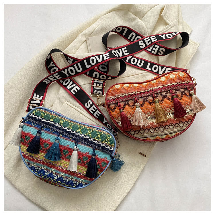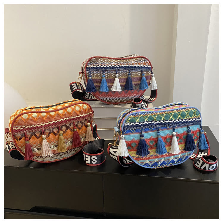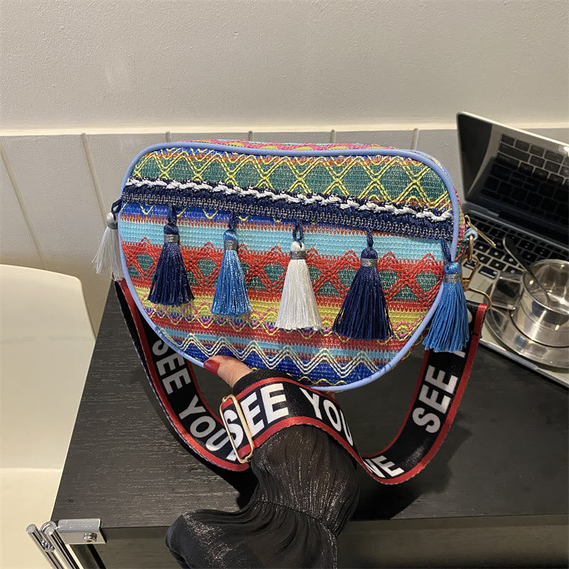Quastentasche für Damen, klassische ethnische Umhängetasche