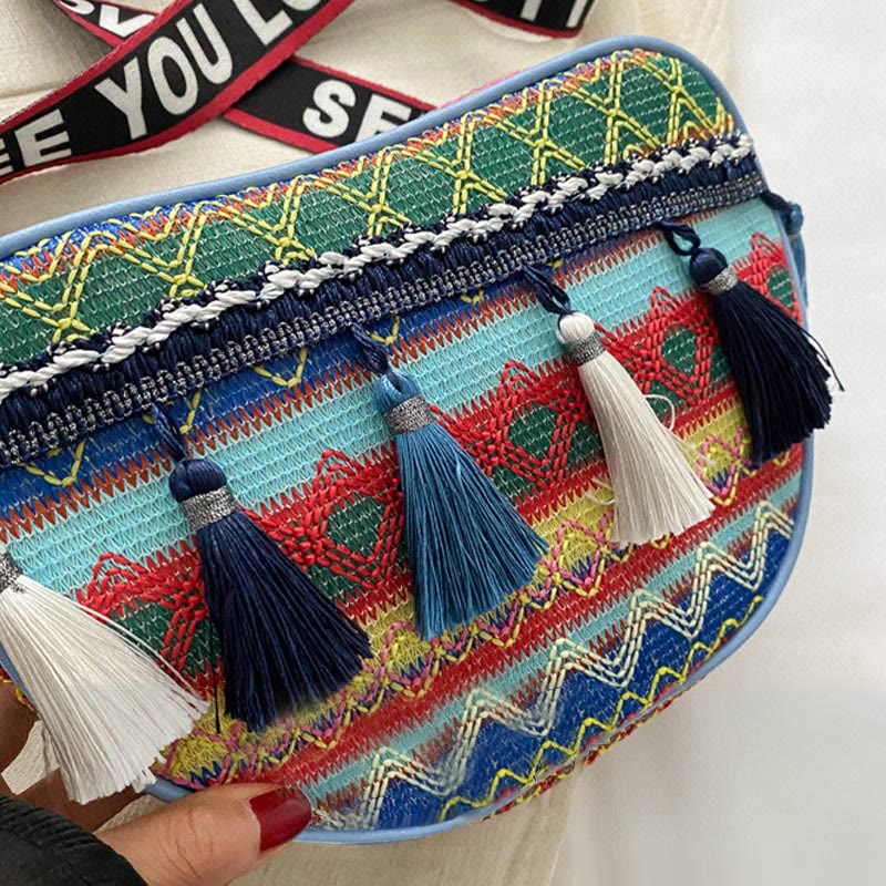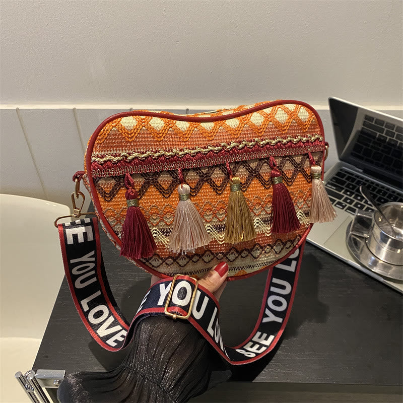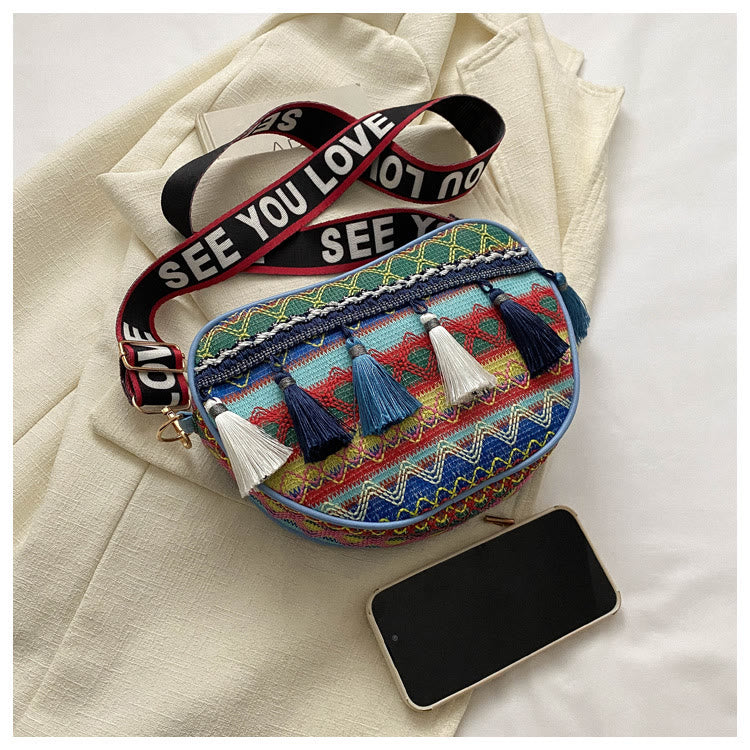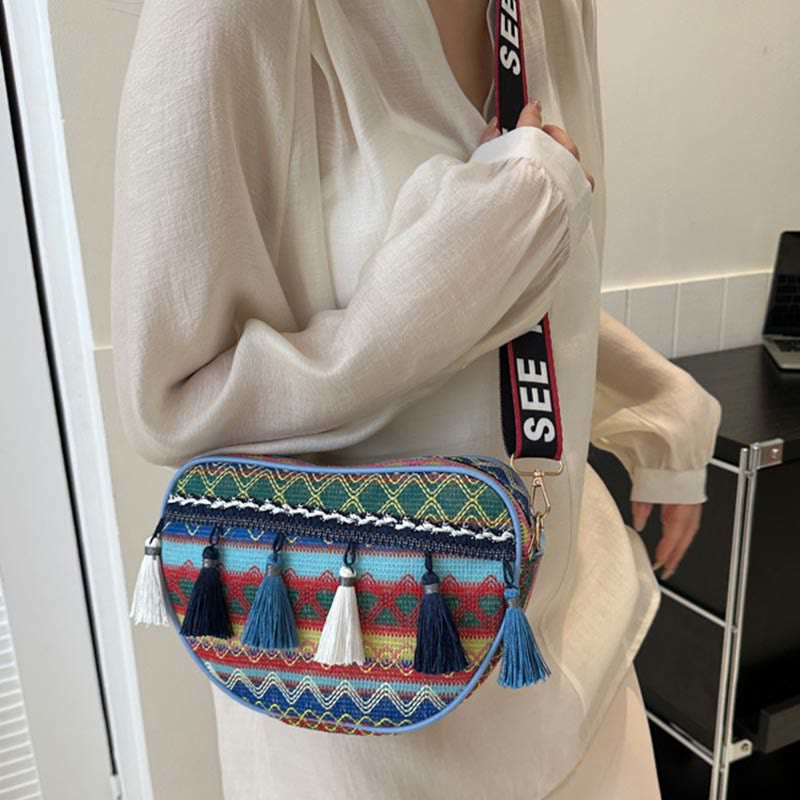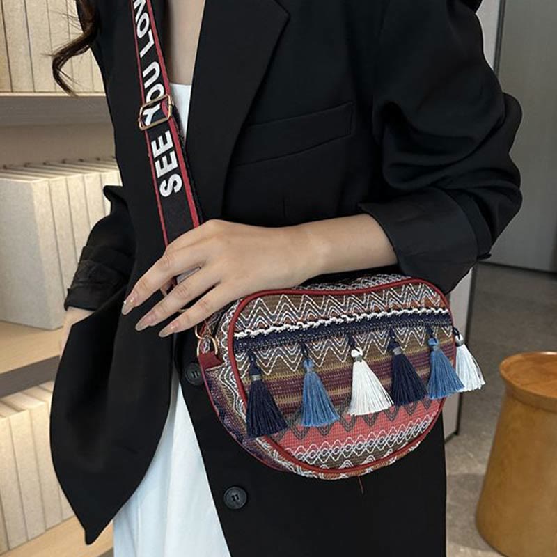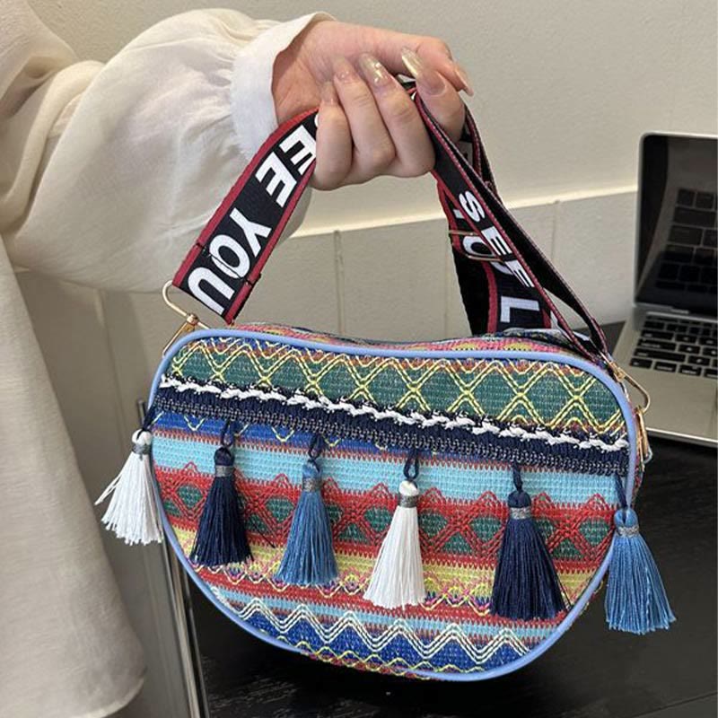 Quastentasche für Damen, klassische ethnische Umhängetasche