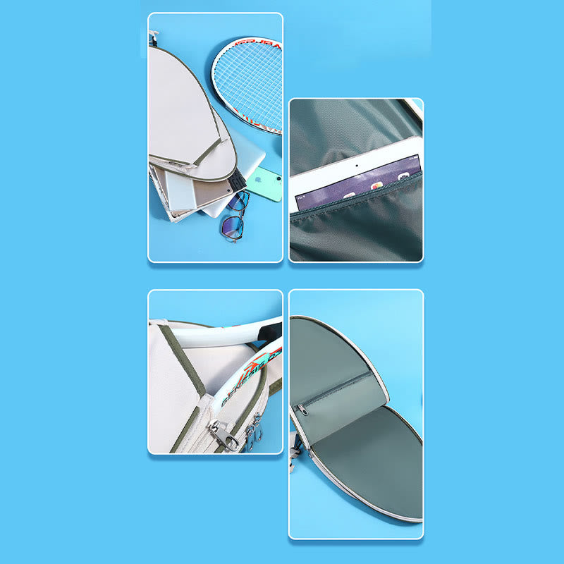 Innenaufteilung: 1 Haupttasche, 1 Innentasche mit Reißverschluss, 1 Schlägertasche