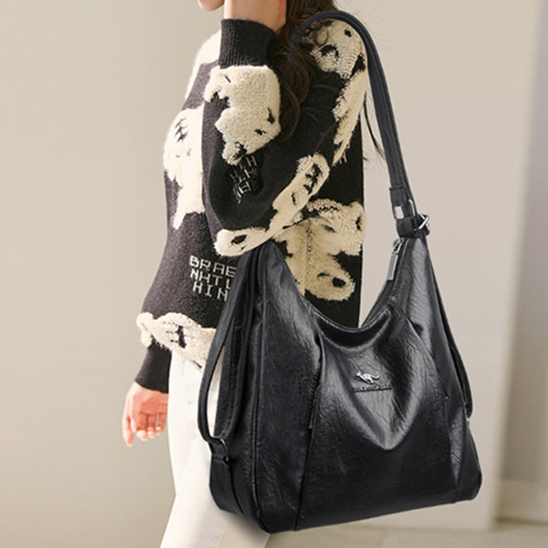 Innenaufteilung: 1 Hauptfach, 1 Innenfach, 1 Innentasche mit Reißverschluss, 1 aufgesetzte Innentasche, 1 Gesäßtasche, 2 Vordertaschen