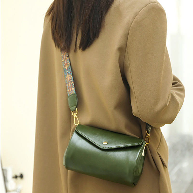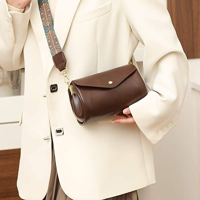 Umhängetasche für Damen aus echtem Leder, zylinderförmig, große Kapazität