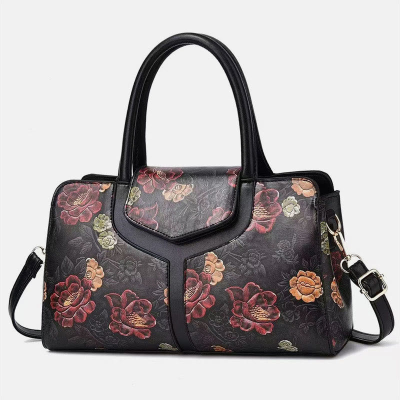 Retro Floral Emboss Handtasche Damen Horizontale Umhängetasche aus Leder
