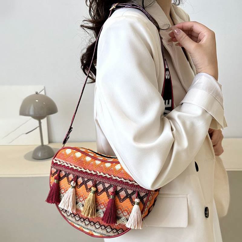 Quastentasche für Damen, klassische ethnische Umhängetasche