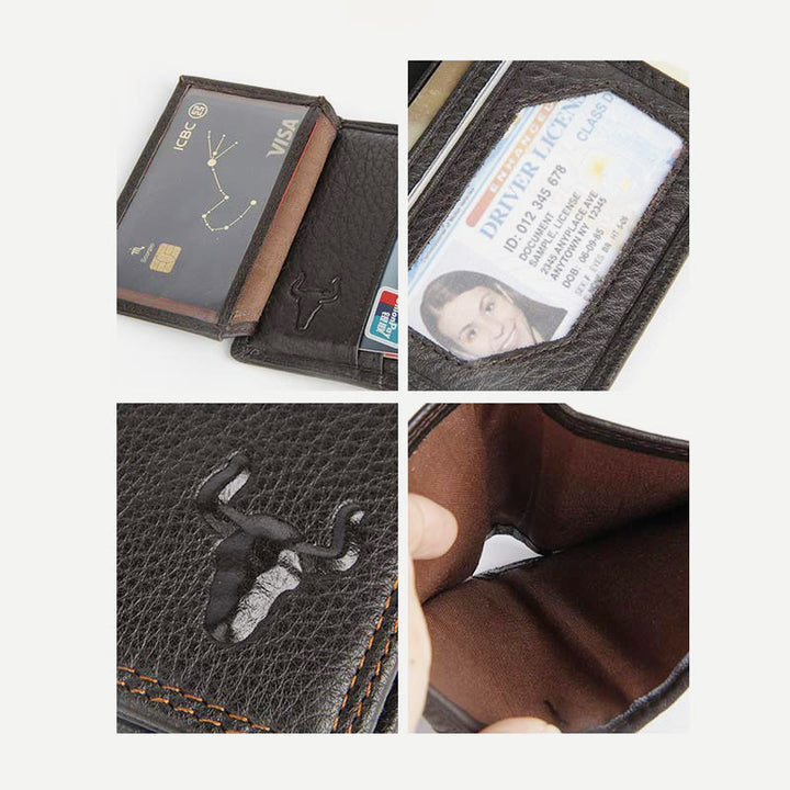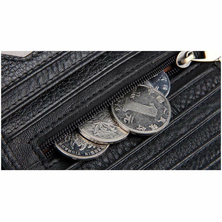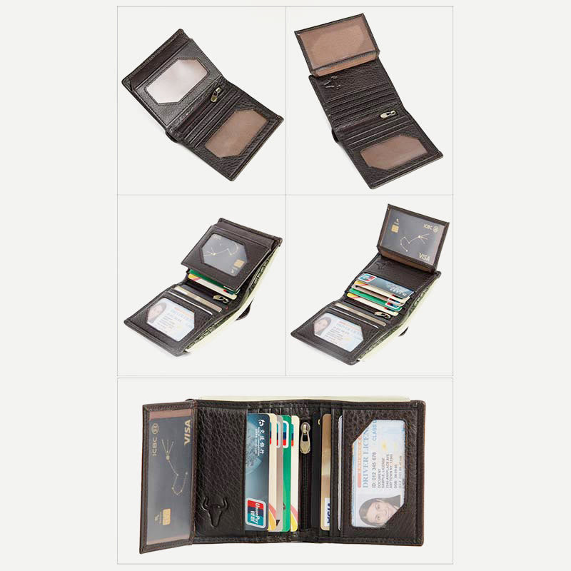 Interne Struktur: 9 Kartenfächer, 2 Fotofächer, 1 Innenfach mit Reißverschluss, 3 Bargeldfächer