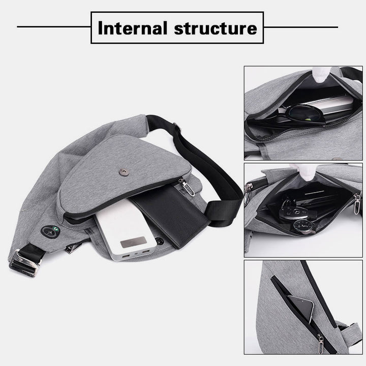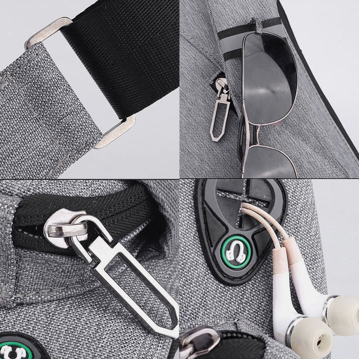 Innenaufteilung: 1 Haupttasche, 1 aufgesetzte Innentasche, 1 Reißverschlusstasche vorne, 1 Reißverschlusstasche hinten