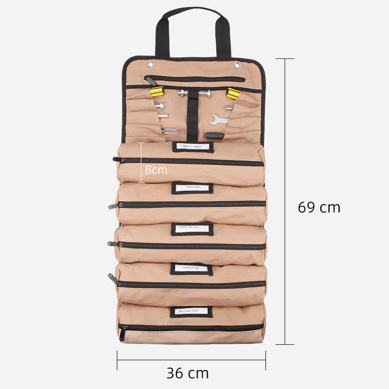Interne Struktur: 5 Aufbewahrungstaschen, 10 Werkzeugfächer, 1 Reißverschlusstasche