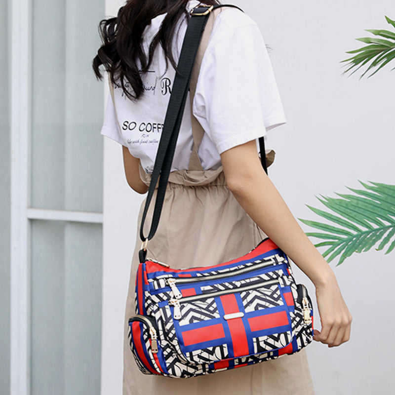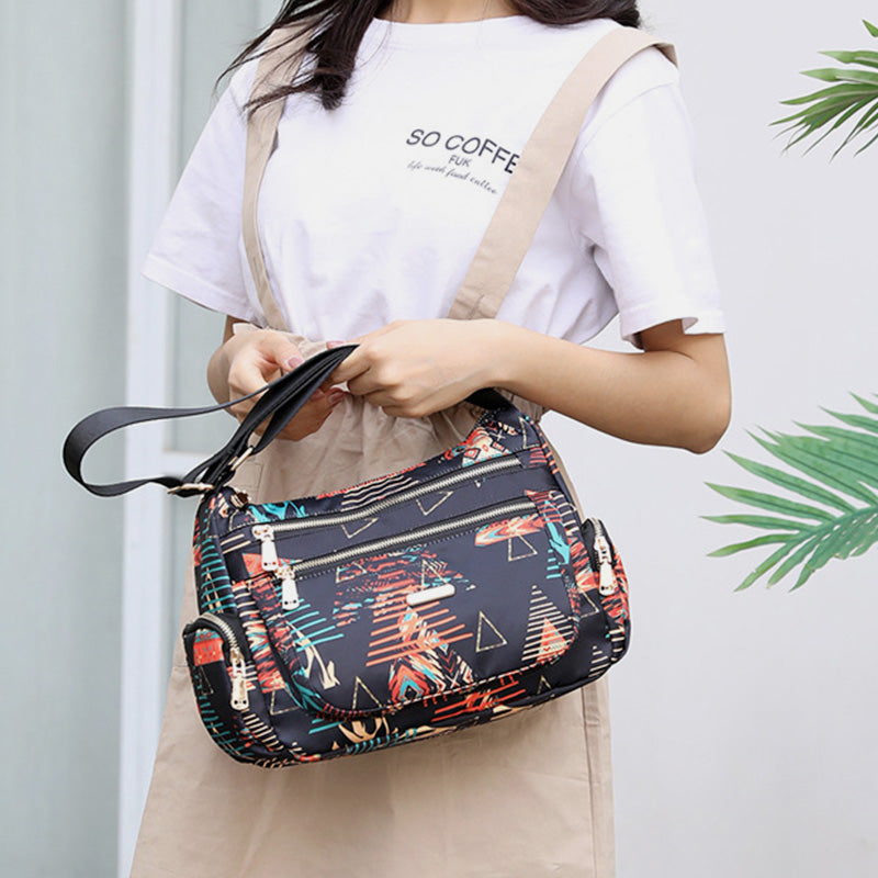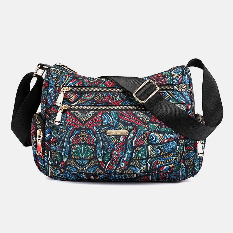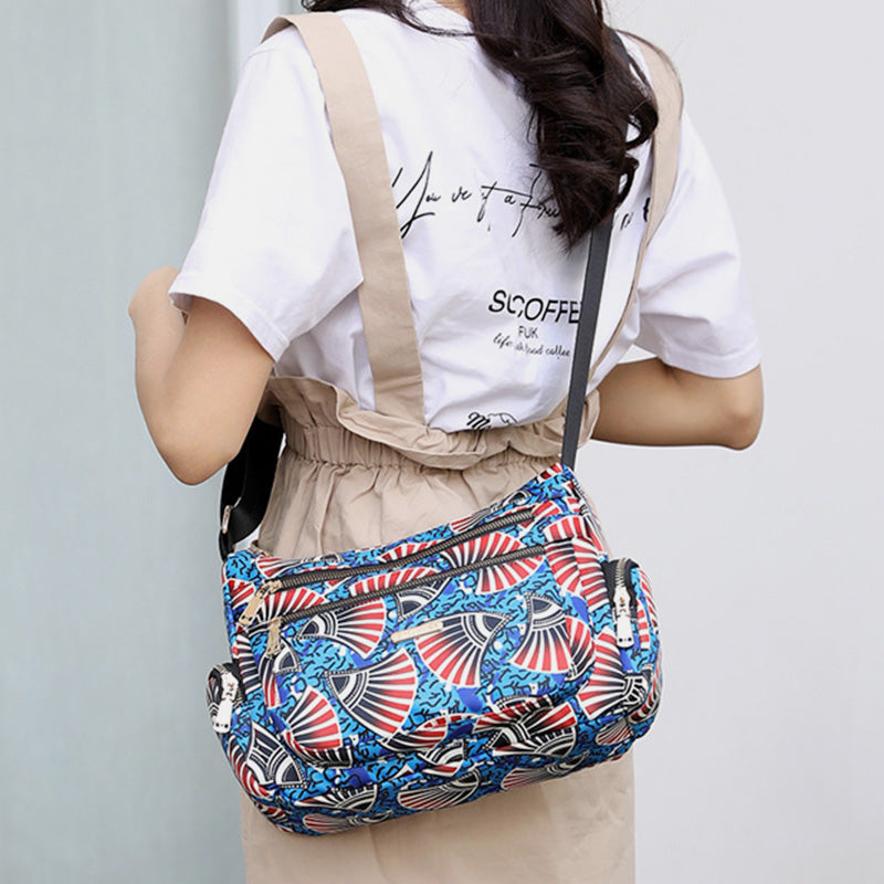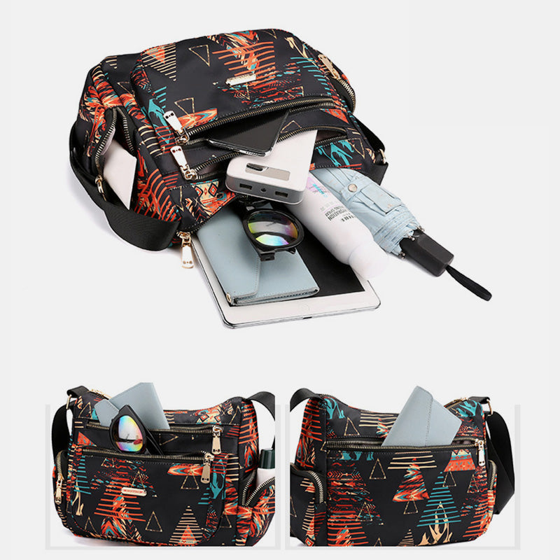 Innenaufteilung: Hauptfach, Innentasche mit Reißverschluss, Innenfach, 2 Fronttaschen mit Reißverschluss, hintere Tasche mit Reißverschluss, Seitentasche