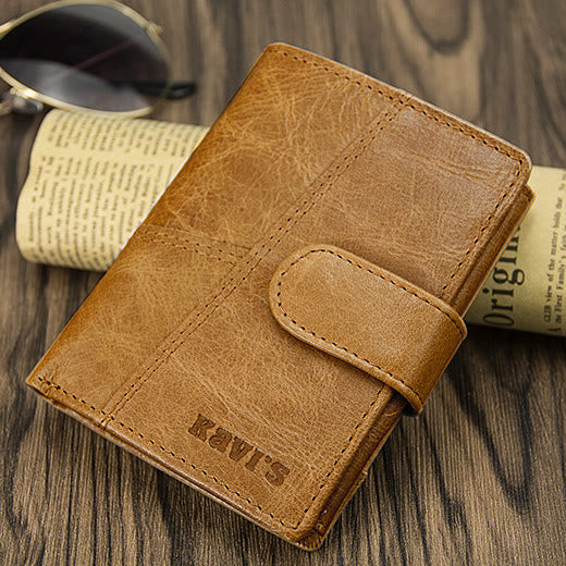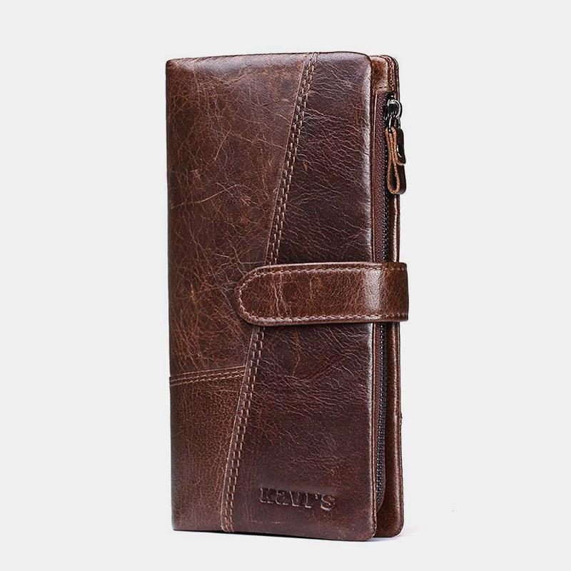 Retro Splicing Lange Schlanke Geldbörse Echtes Leder Dreifach gefaltete Brieftasche