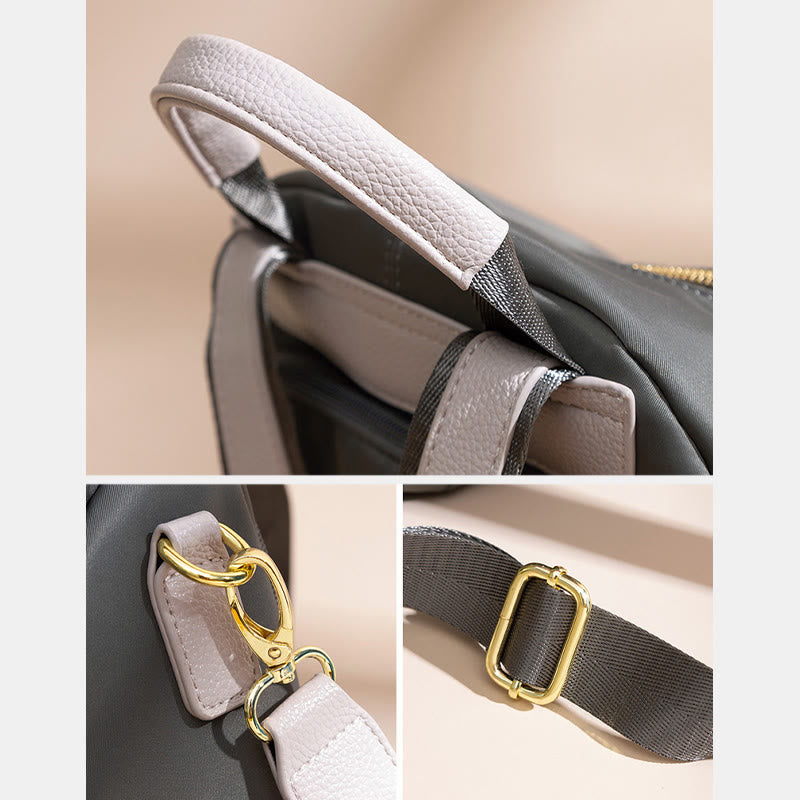 Innenaufteilung: 1 Hauptfach, 1 Innenfach, 2 Innentaschen mit Reißverschluss, 2 Seitentaschen, 1 Gesäßtasche, 1 Vordertasche