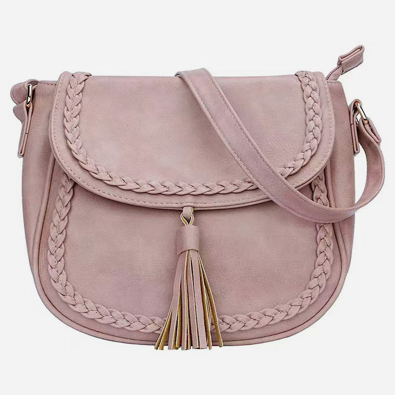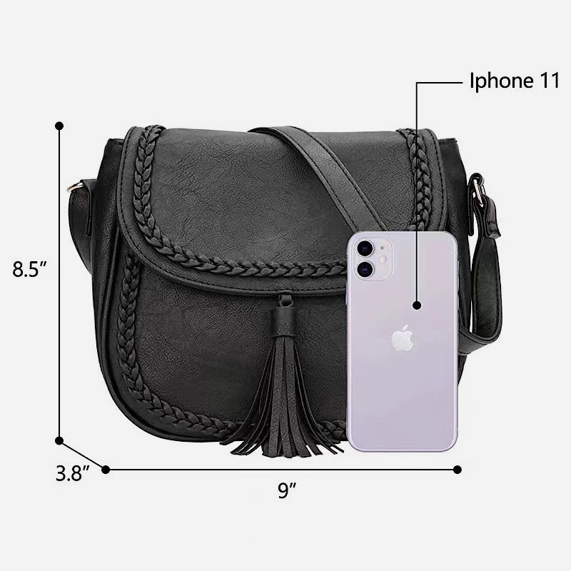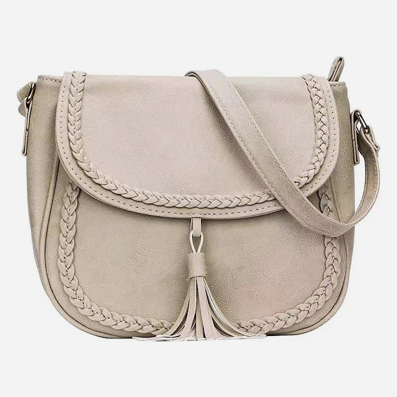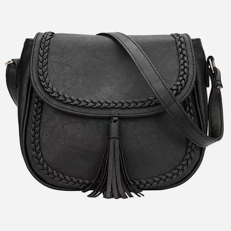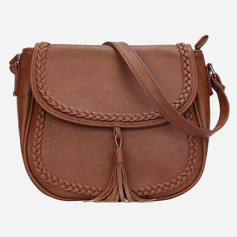 Sattelgeldbörse mit Twist-Streifen und Quaste für Damen, klassische Umhängetasche