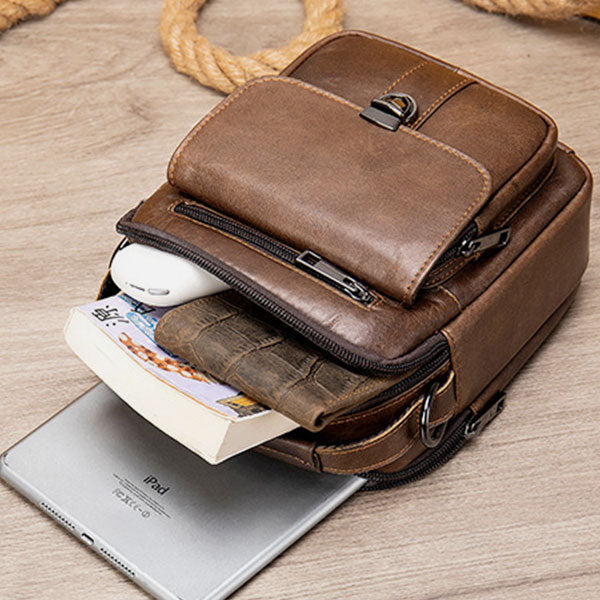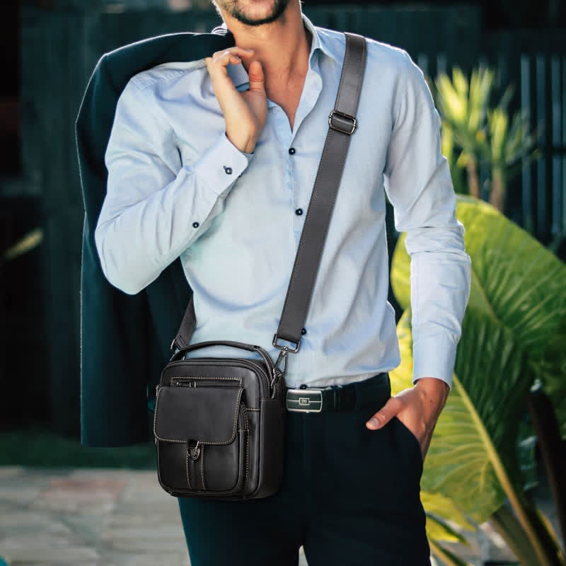 🤠 Verstellbarer Schultergurt – verstellbar von 16 bis 29 Zoll mit Verschluss, Gurtbreite 31 mm. Ein Ledergriff oben ist praktisch zum Tragen.