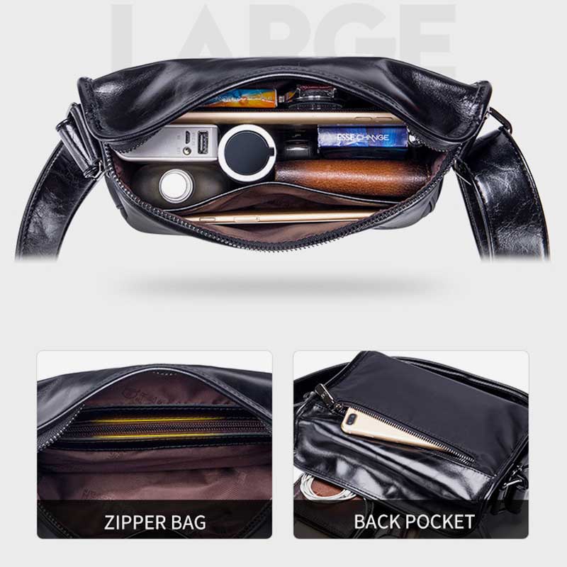 Innenaufteilung: 2 Haupttaschen, 2 Innenfächer, 1 Innentasche mit Reißverschluss, 1 Vordertasche, 1 Gesäßtasche