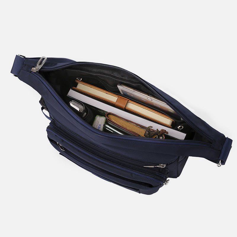 Interne Struktur: 3 Haupttaschen, 1 Innentasche mit Reißverschluss, 1 Seitentasche, 1 Gesäßtasche, 2 Vordertaschen