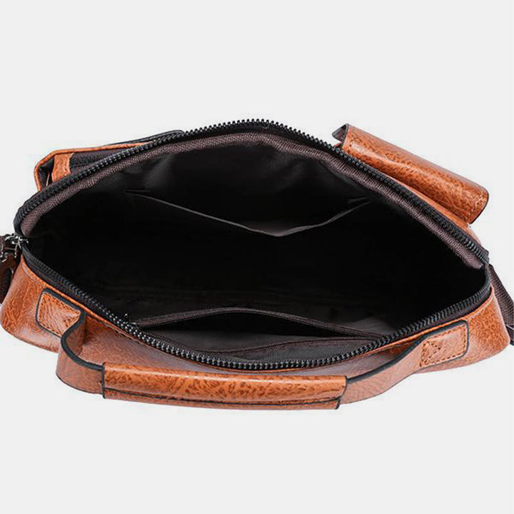 Interne Struktur: 1 Haupttasche, 1 Innentasche mit Reißverschluss, 1 aufgesetzte Innentasche, 2 Vordertaschen, 1 Gesäßtasche