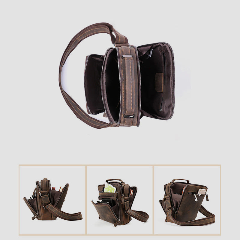 Interne Struktur: 2 Haupttaschen, 1 Innentasche mit Reißverschluss, 2 Vordertaschen, 1 Gesäßtasche