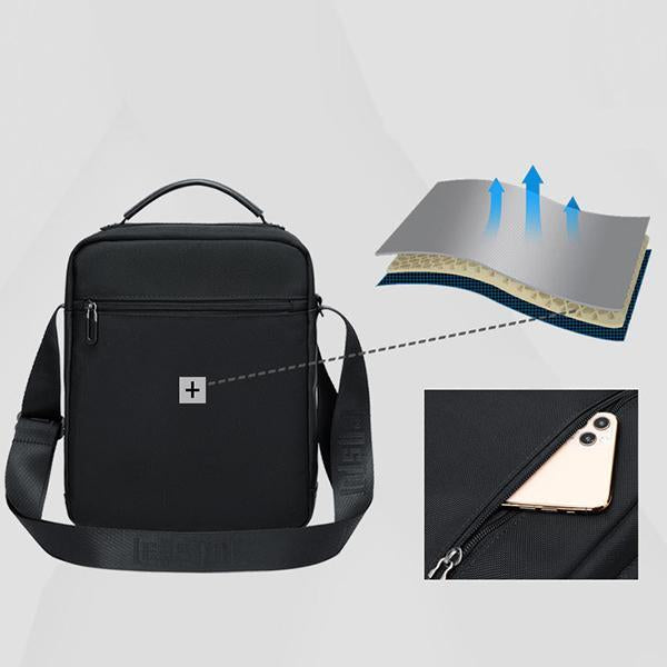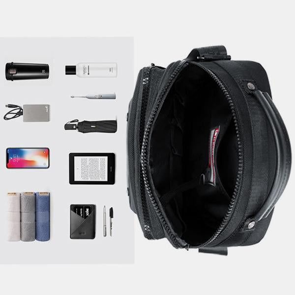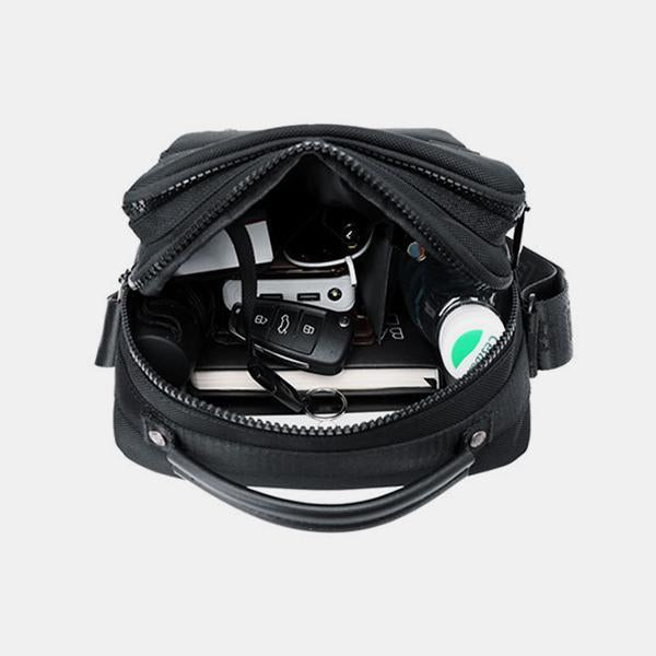 Aufbau: Hauptfach, Innenfach, Reißverschlusstasche vorne, Reißverschlusstasche hinten, Schlüsselanhänger
