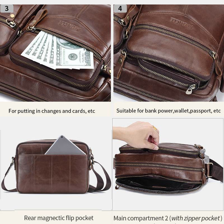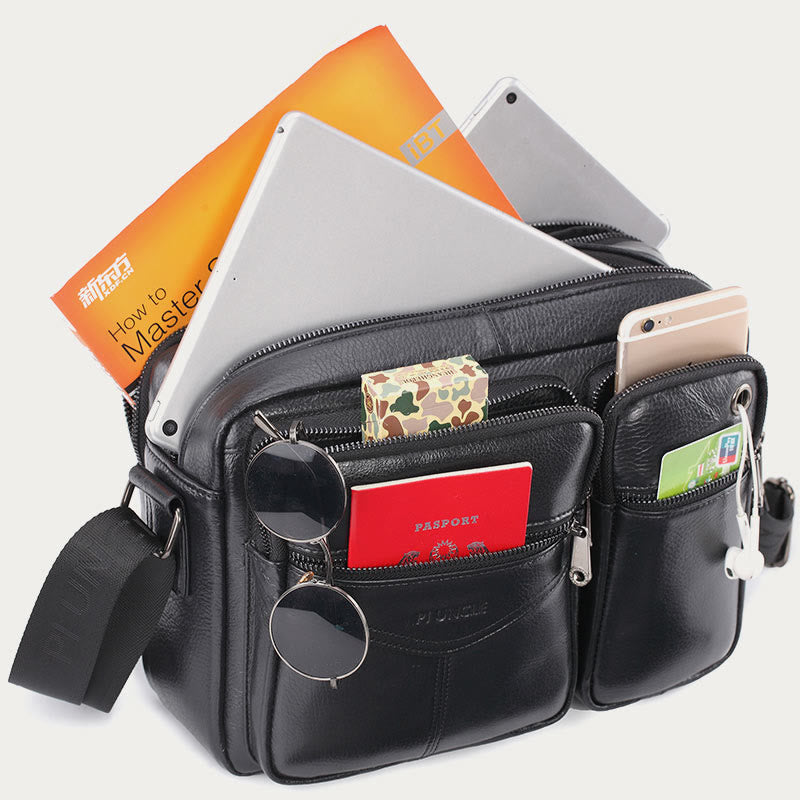 Interne Struktur: 2 Haupttaschen, 1 Innentasche mit Reißverschluss, 1 Innenfach, 4 Kartenfächer, 1 Gesäßtasche, 4 Vordertaschen