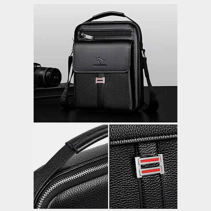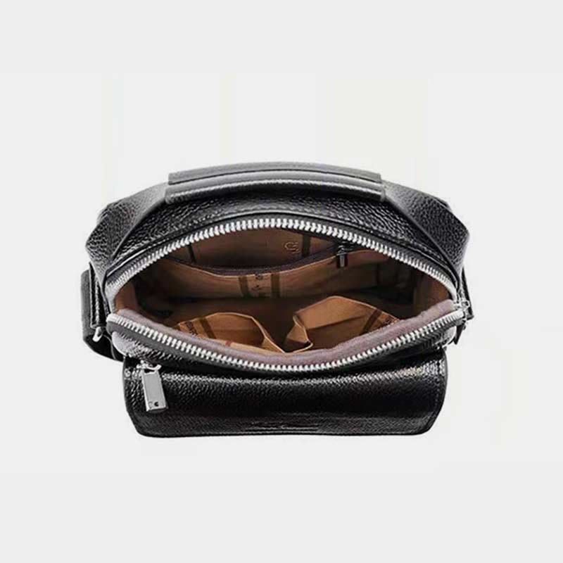 Innenaufteilung: 1 Hauptfach, 2 Innenfächer, 1 Innentasche mit Reißverschluss, 1 Gesäßtasche, 2 Vordertaschen