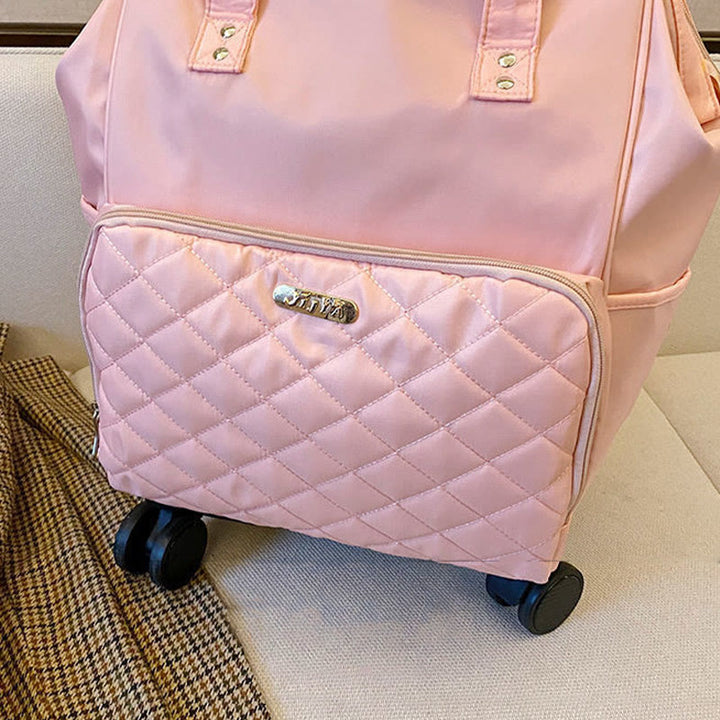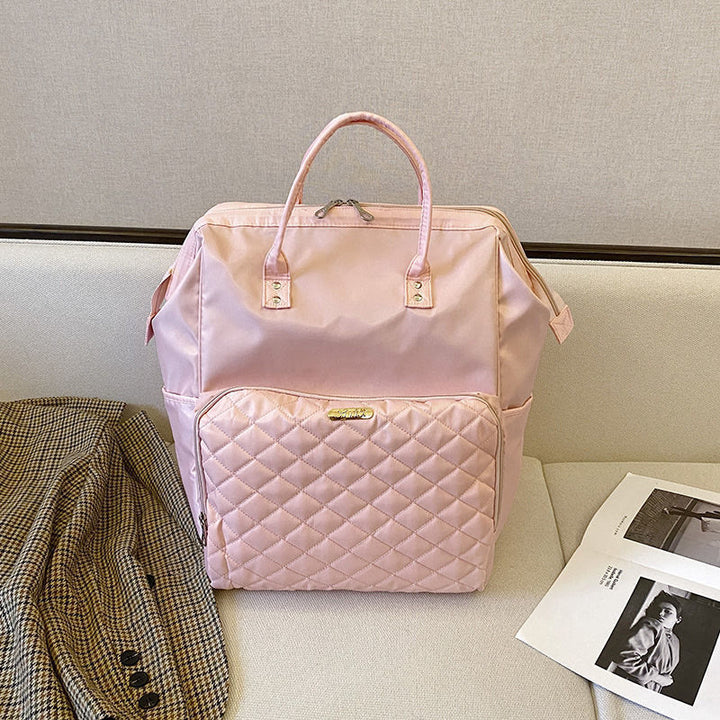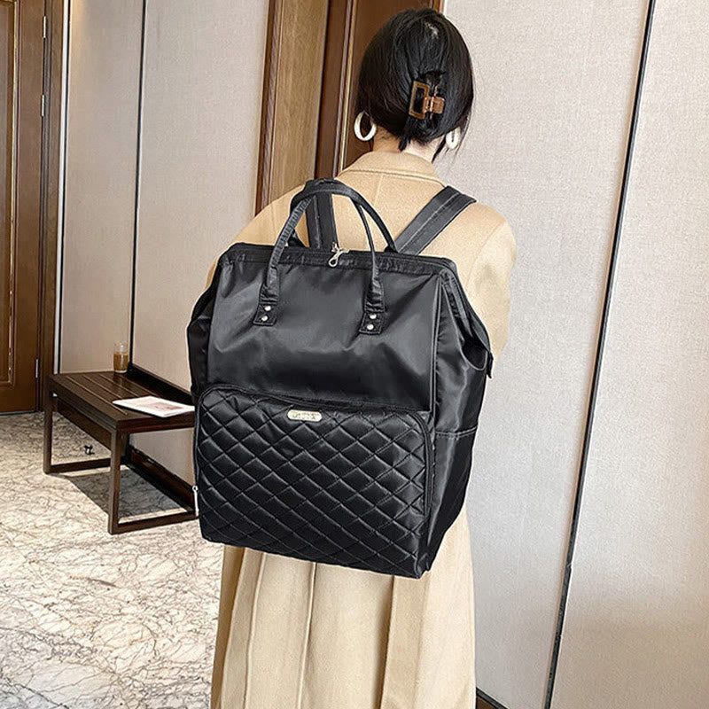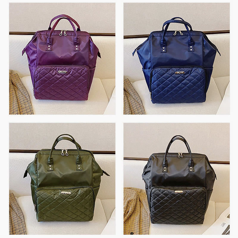 Innenaufteilung: 1 Haupttasche, 1 Innenfach, 1 aufgesetzte Innentasche, 2 Seitentaschen, 1 Fronttasche, 1 Gesäßtasche