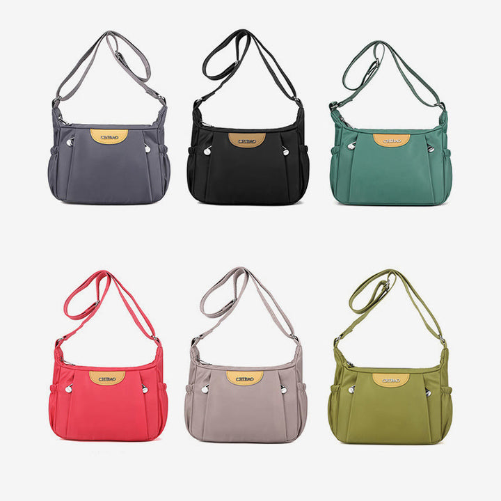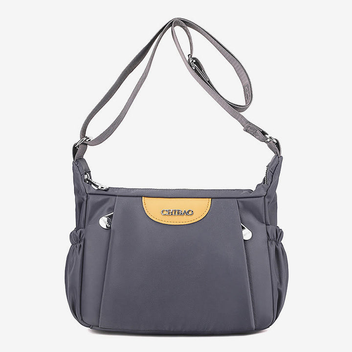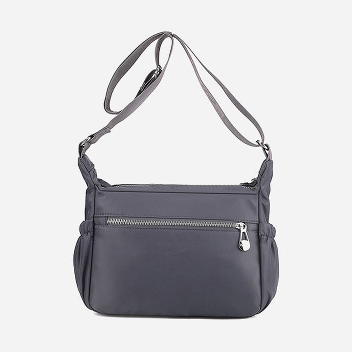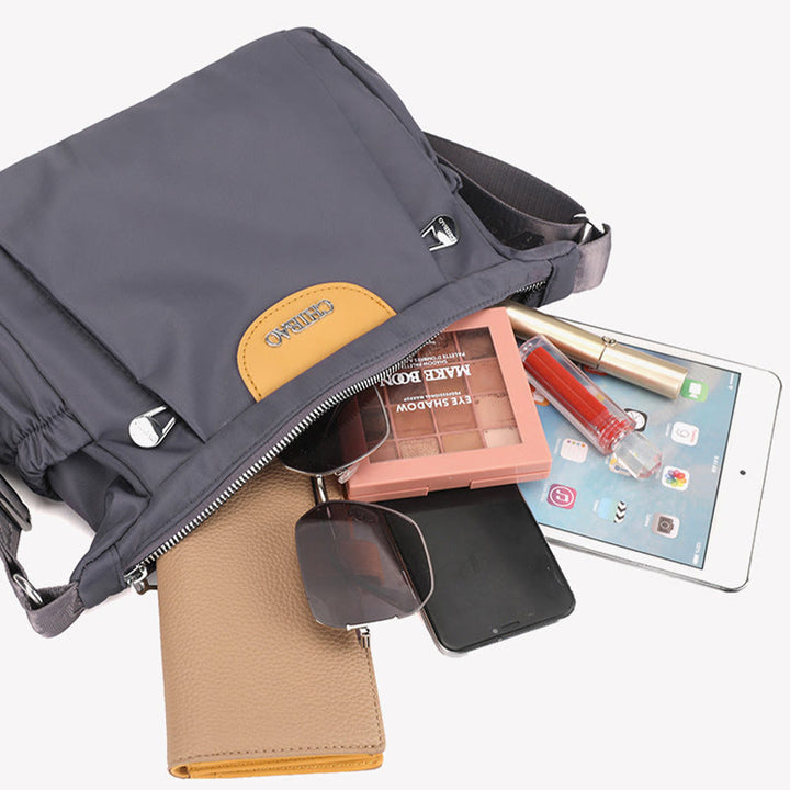 Innenaufteilung: 1 Haupttasche, 2 Innenfächer, 2 Innentaschen mit Reißverschluss, 2 Seitentaschen, 2 Vordertaschen, 1 Gesäßtasche
