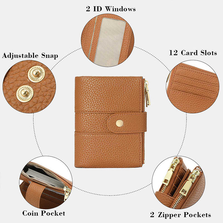 Dreifach faltbare, kompakte Geldbörse für Damen aus echtem Leder mit RFID-Blockierung