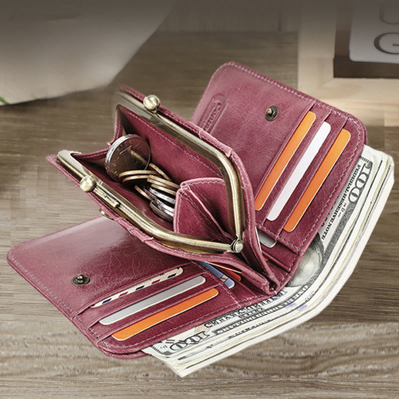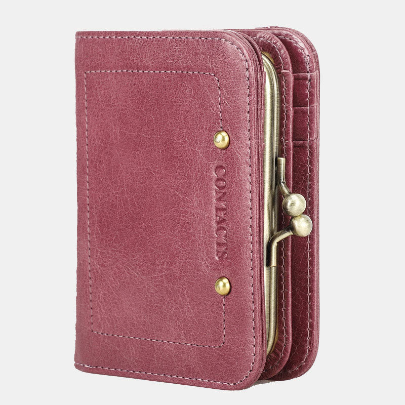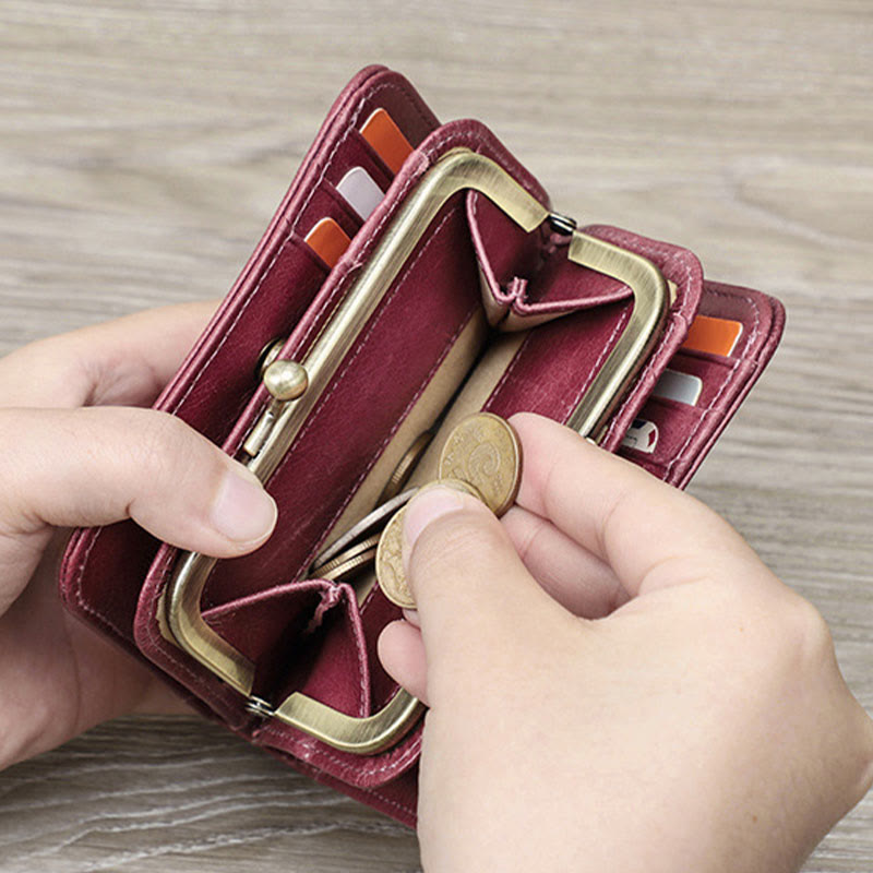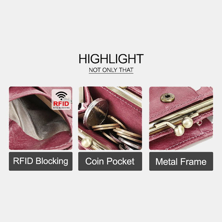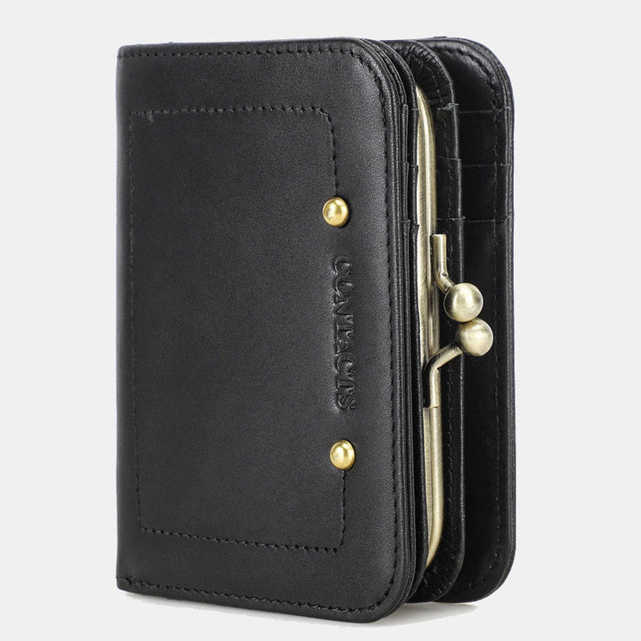 Dreifach faltbare Lederbrieftasche mit RFID-Schutz und Kiss-Lock-Münzfach