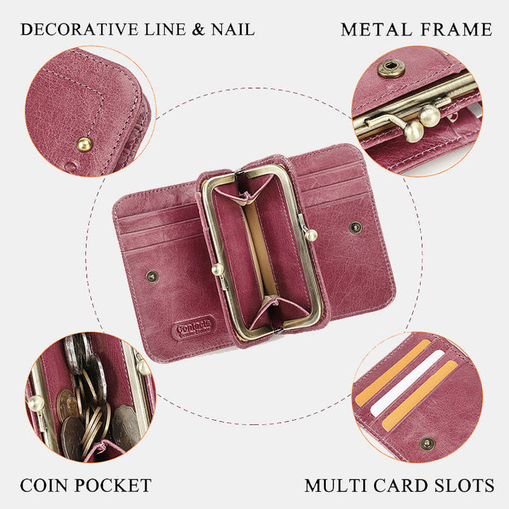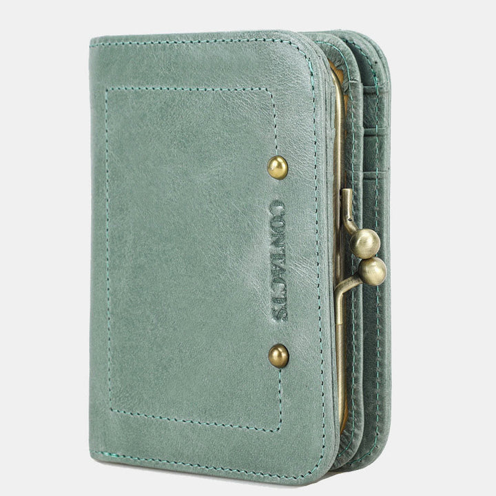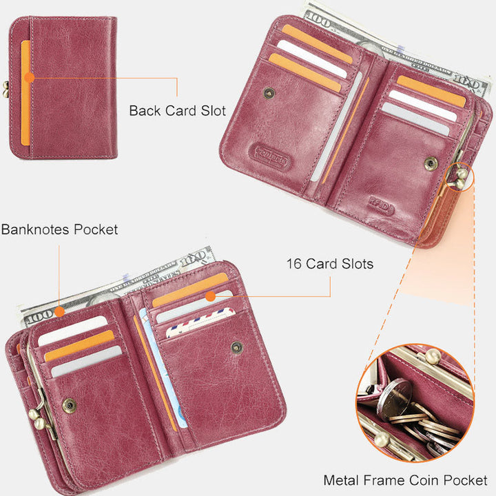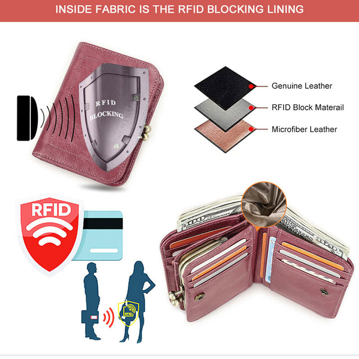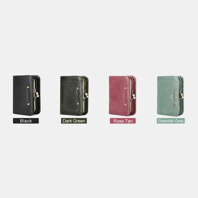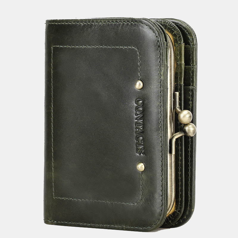 Dreifach faltbare Lederbrieftasche mit RFID-Schutz und Kiss-Lock-Münzfach