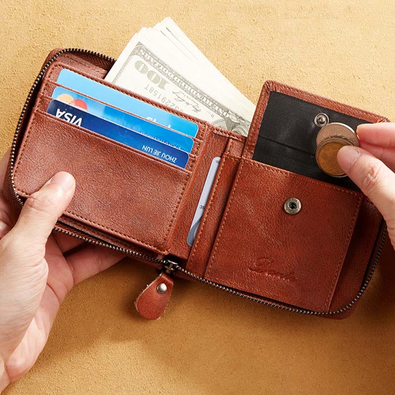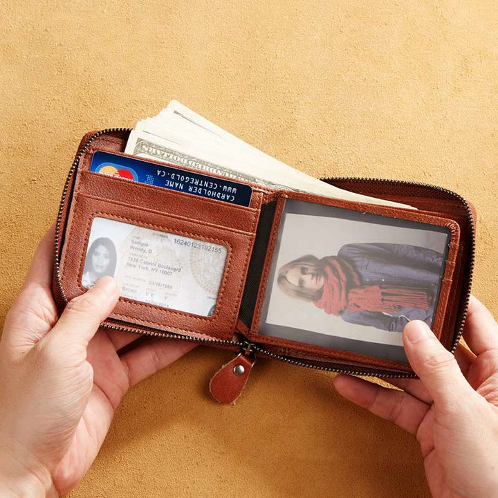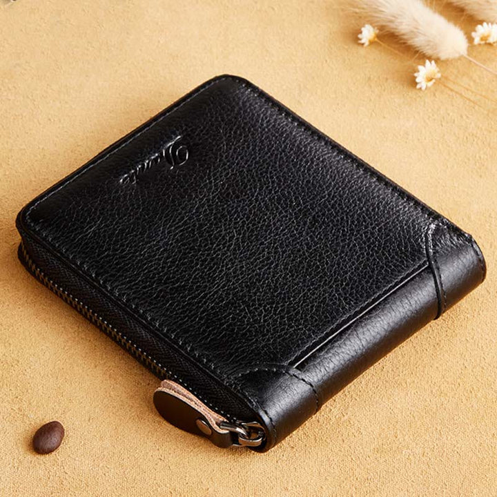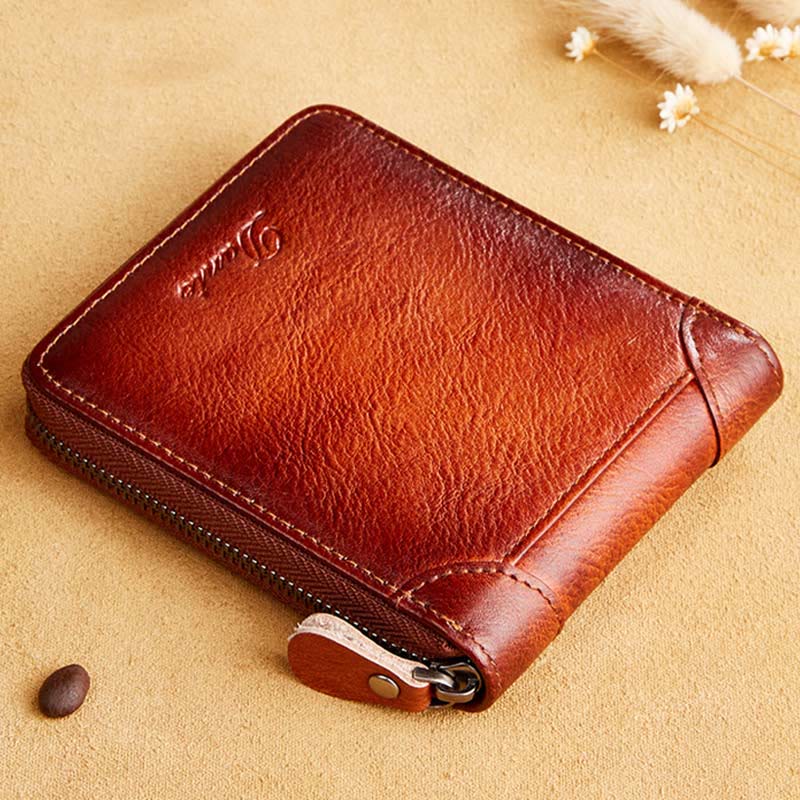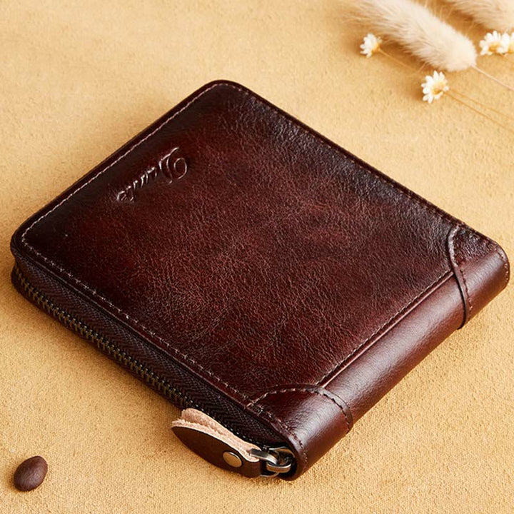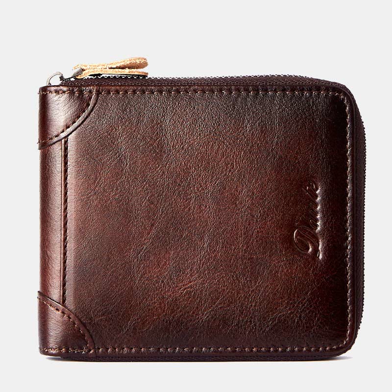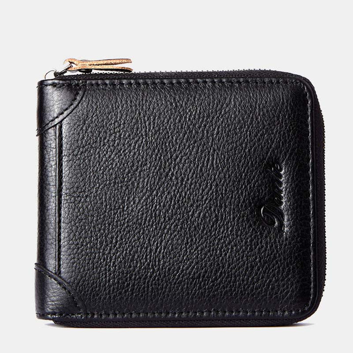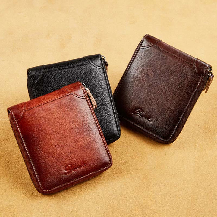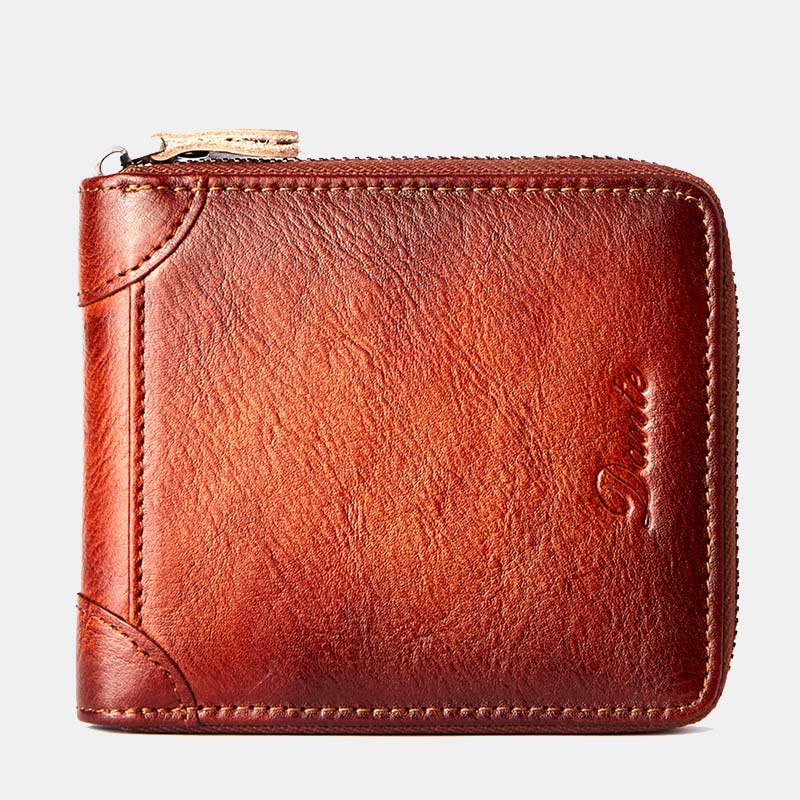 Dreifach faltbare Lederbrieftasche mit RFID-Schutz und Rundum-Reißverschluss