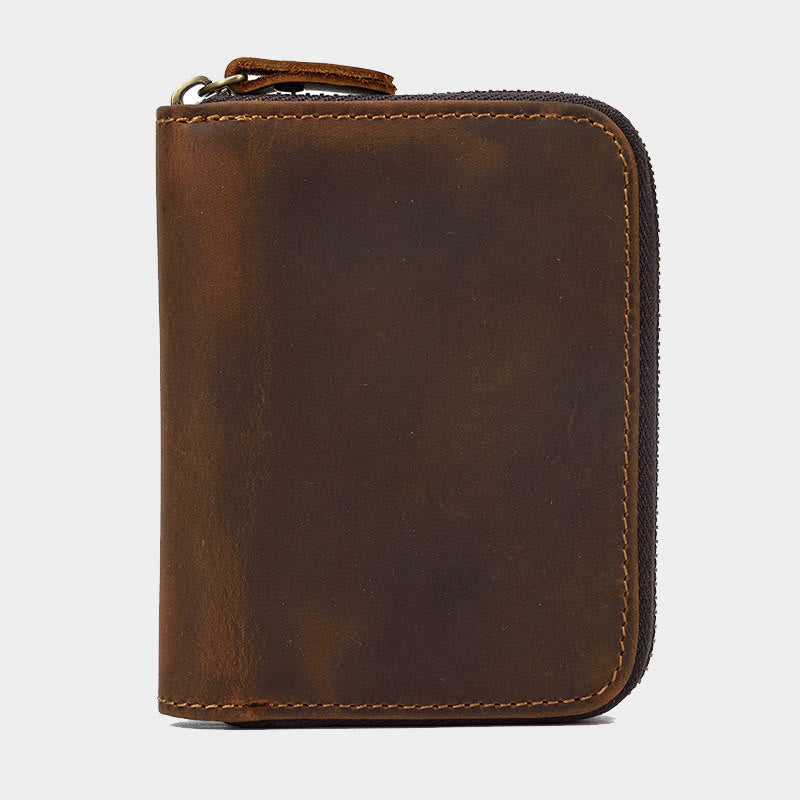 Dreifach gefaltete Geldbörse aus Rindsleder mit Rundum-Reißverschluss, Münzbörse, Kartenhalter