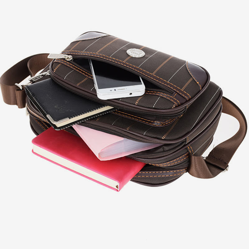 Innenaufteilung: 3 Haupttaschen, 1 Innentasche mit Reißverschluss, 1 Vordertasche, 1 Gesäßtasche