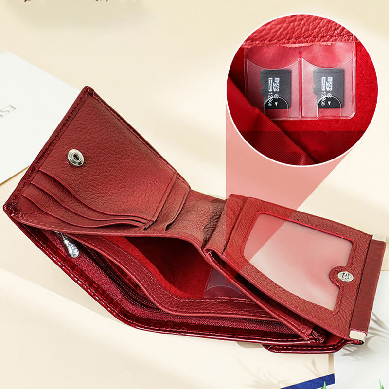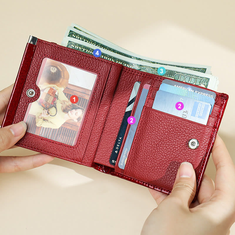 Interne Struktur: 6 Kartenfächer, 1 Fotofach, 2 Bargeldfächer, 1 Reißverschlussfach, 1 Münzfach