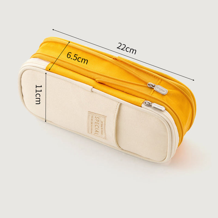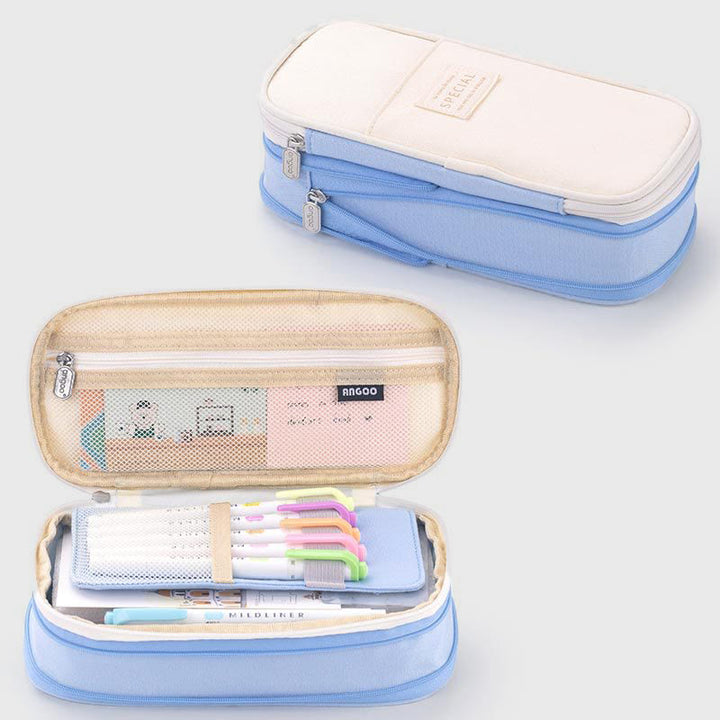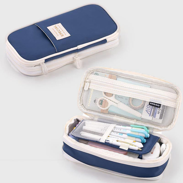 Interne Struktur: 1 Haupttasche, 1 Innentasche mit Reißverschluss, 5 Stiftfächer, 1 Vordertasche
